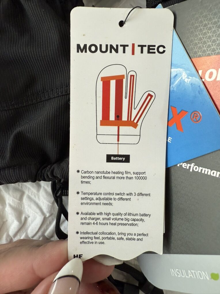 VenmoBlack Mount Tec Heated Mittens. 4-6 hours of heat. Size Large. Brand New with Tags. Retails for around $159.99