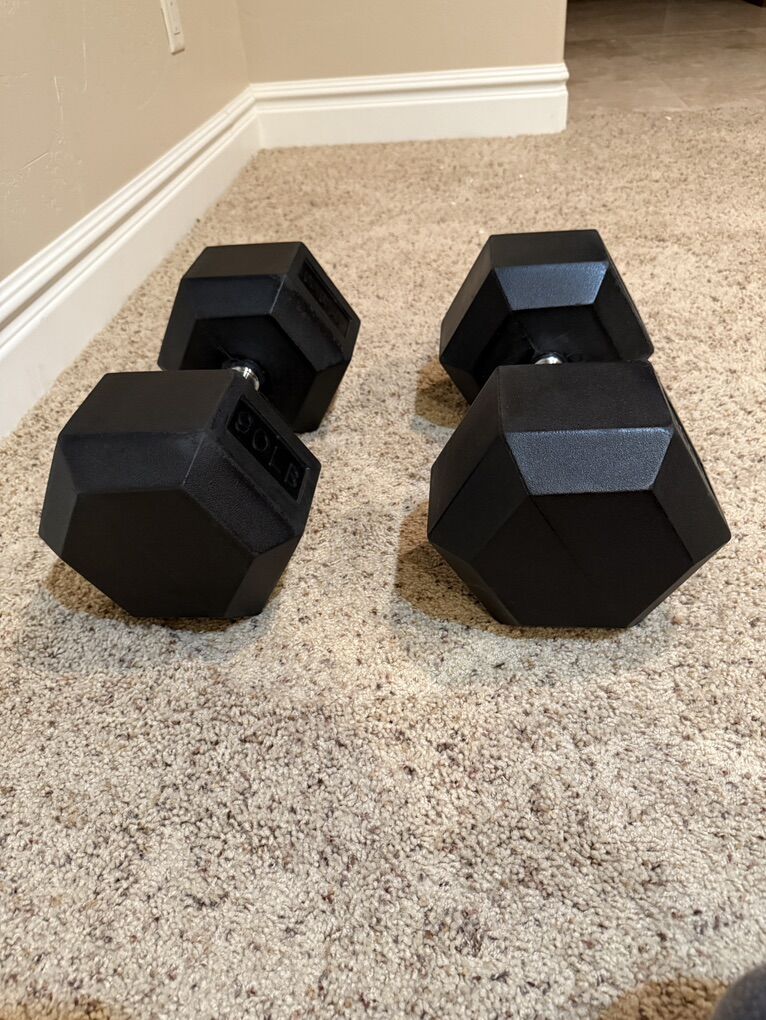 ZelleSet of two 90lb rubber hex dumbbells, great condition
