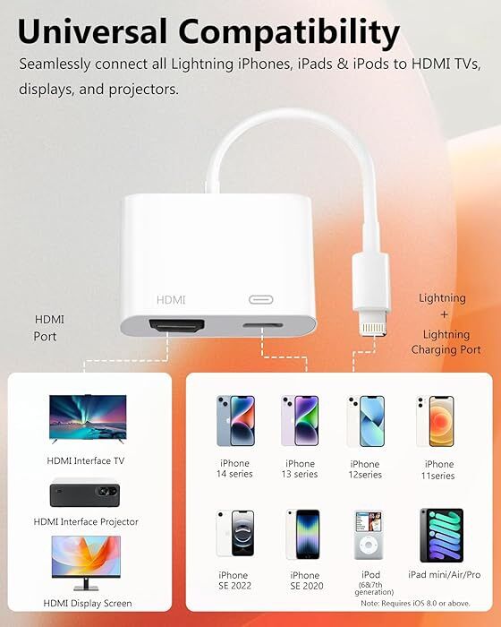 VenmoBrand new, Lightning to HDMI Adapter, [Apple MFi Certified], Digital AV Dongle for iPhone, iPad, 1080P Sync Screen Cable, with Lightning Charging Port, to TV/Projector/Monitor, No Need Power Supply