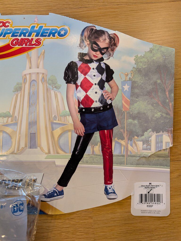 LIKE NEW CONDITION! Girl Size Medium. Includes full costume: wig, pants, shorts, top, and mask. This is such a fun and unique costume! Message or text any time. Cash only please. I can meet at the Kaysville Library (Tuesdays or Fridays)!or the South Weber Maverik. Please see my other ads. Thanks!