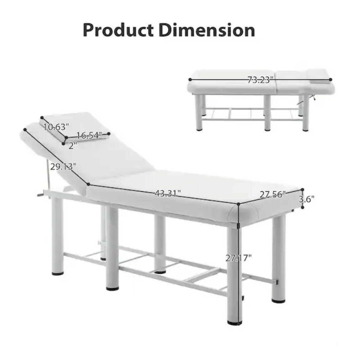 White backrest adjustable massage table with removable headrest bottom shelf storage memory foam layer salon bed. New