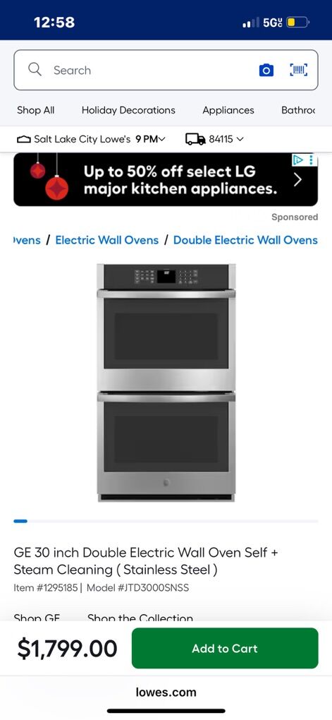 Venmo30” wide double oven, brand new.