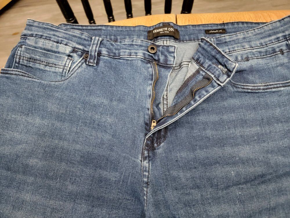 PayPalKenneth Cole Men’s Straight Fit Stretch Denim Jeans in blue, size 38 x 34. These jeans feature a regular fit with a straight leg design, made from denim fabric with added stretch for comfort and flexibility. Jeans are in excellent condition.