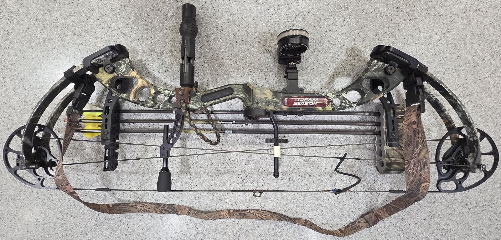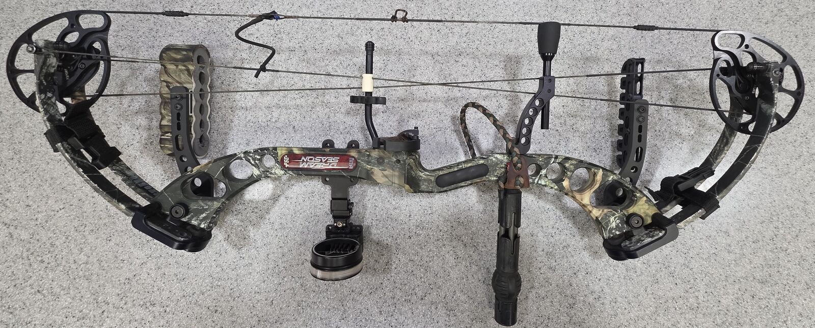 VenmoHunting Compound Bow. This is a PSE Pro Series X Force Dream Season Compound Bow. It is ready for the hunt with everything you will need. Including the zippered case that will hold everything in the photos including the Bow, Arrow case for a dozen arrows with tips. Scott wrist release, fore arm protector, hunting sling, protective sling, Hunter 5 pin sight, PSE 6 arrow mounted quiver, and more. See pictures. I gave up hunting a few years ago not long after I had purchased this bow. It has not been used much and is in like new condition.