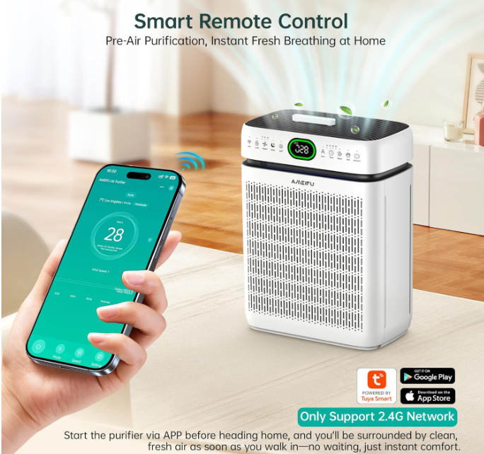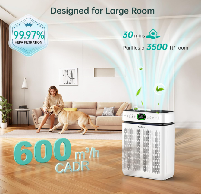 Zelle2025 Upgraded Air Purifier with Pet Mode & Dual Intake:2025 new all-in-one air purifier, exclusive Pet Mode targets pet hair & odors. Unique double-sided intake accelerates air circulation, quickly refreshing large rooms up to 3500 sq ft. High-efficiency HEPA + activated carbon filter captures particles & reduces odors, ideal for living rooms, offices, bedrooms, kids’ rooms, etc.