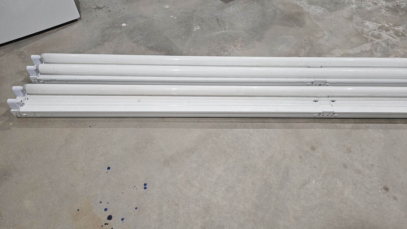 Venmo(2) 8' fluorescent light fixtures w/ 3 bulbs. missing 1 bulb.
