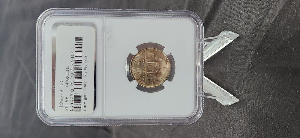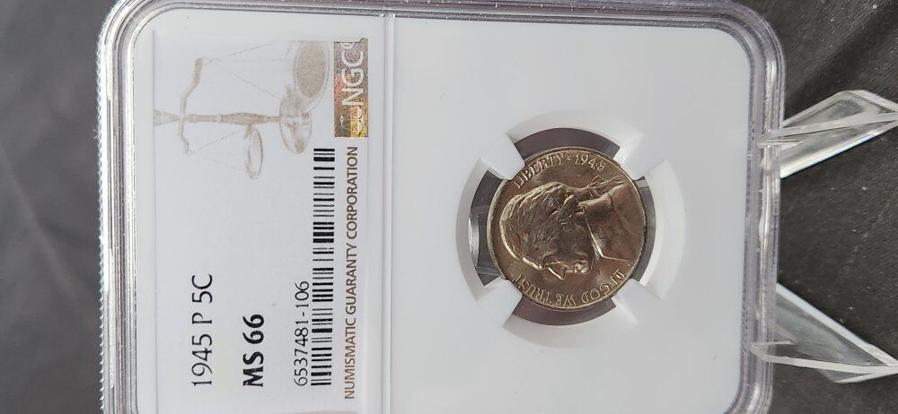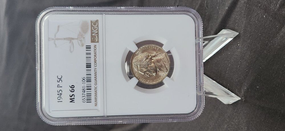 1945 P US Nickel 5c .05 Graded MS 66 by NGC! A great piece of US nusmismatic history. Beautifully preserved and graded uncirculated Mint State MS66 by NGC. This coin is near flawless with a brilliant finish. There is some nice light toning! The case is a beautiful presentation! Valued by NGC at $45. Comes with the case stand. First $35 takes it! KSL messenger or txt. 8016414771 KSL messenger is best.