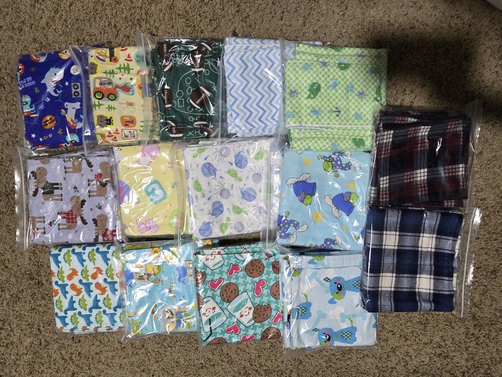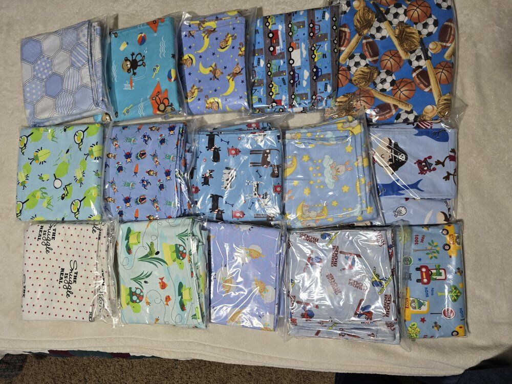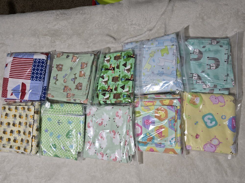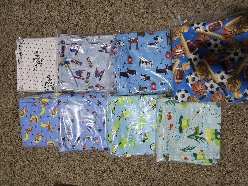 VenmoREDUCED PRICE Snuggly warm baby blankets with matching burp cloths. 36"x36" soft, double layered flannel is wonderful for swaddling. Lots of darling patterns. *Pictures have been updated. Willing to make a deal if multiple sets are purchased.