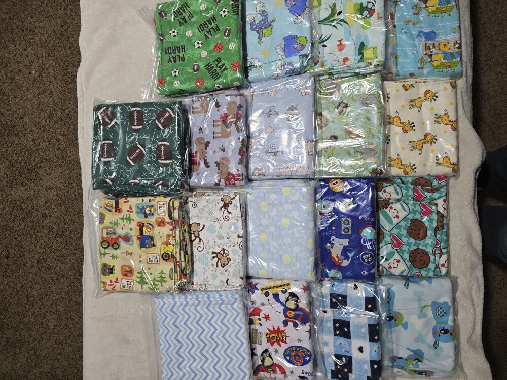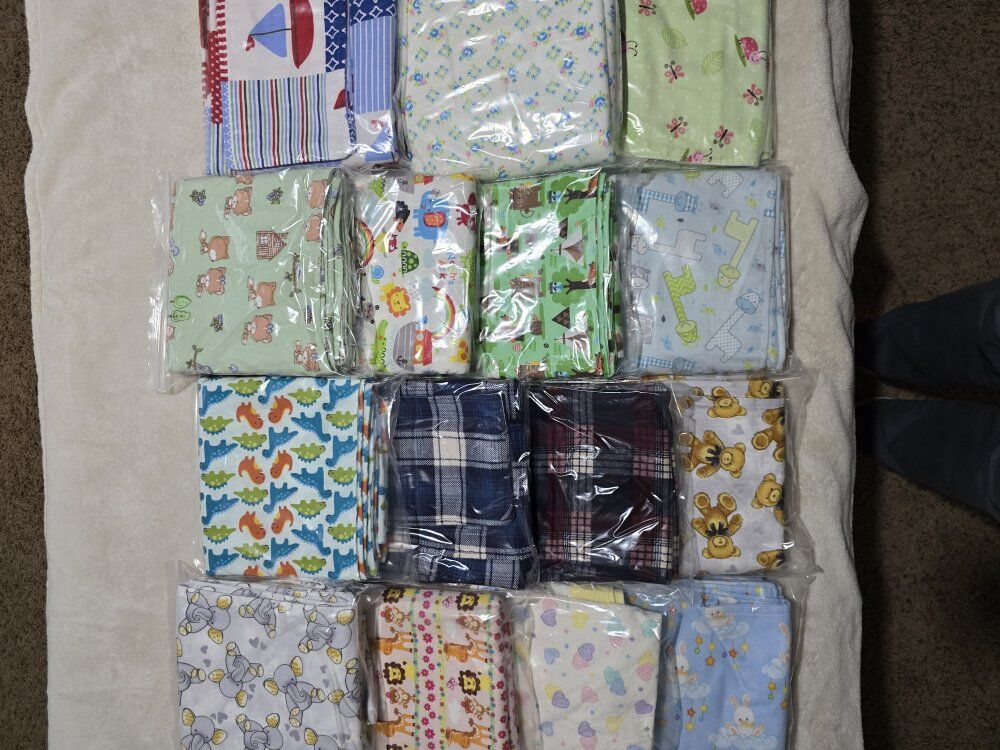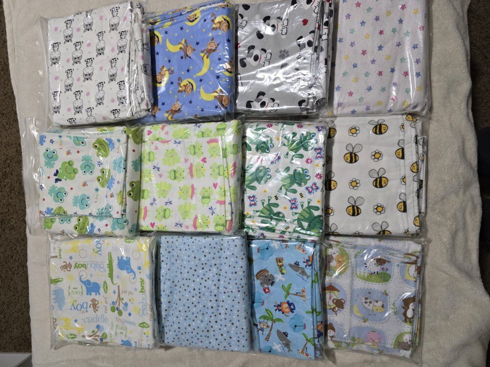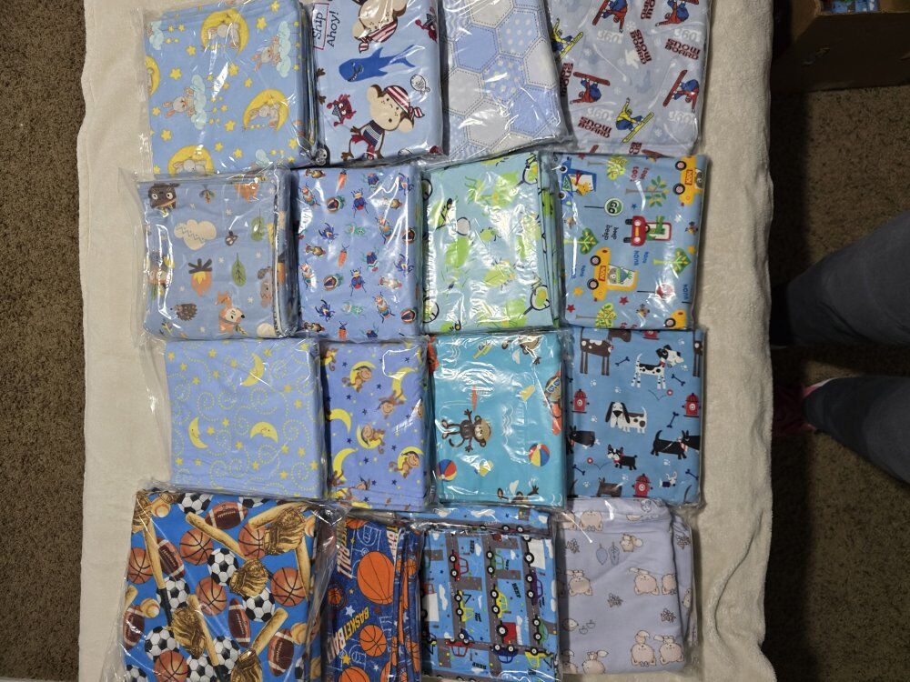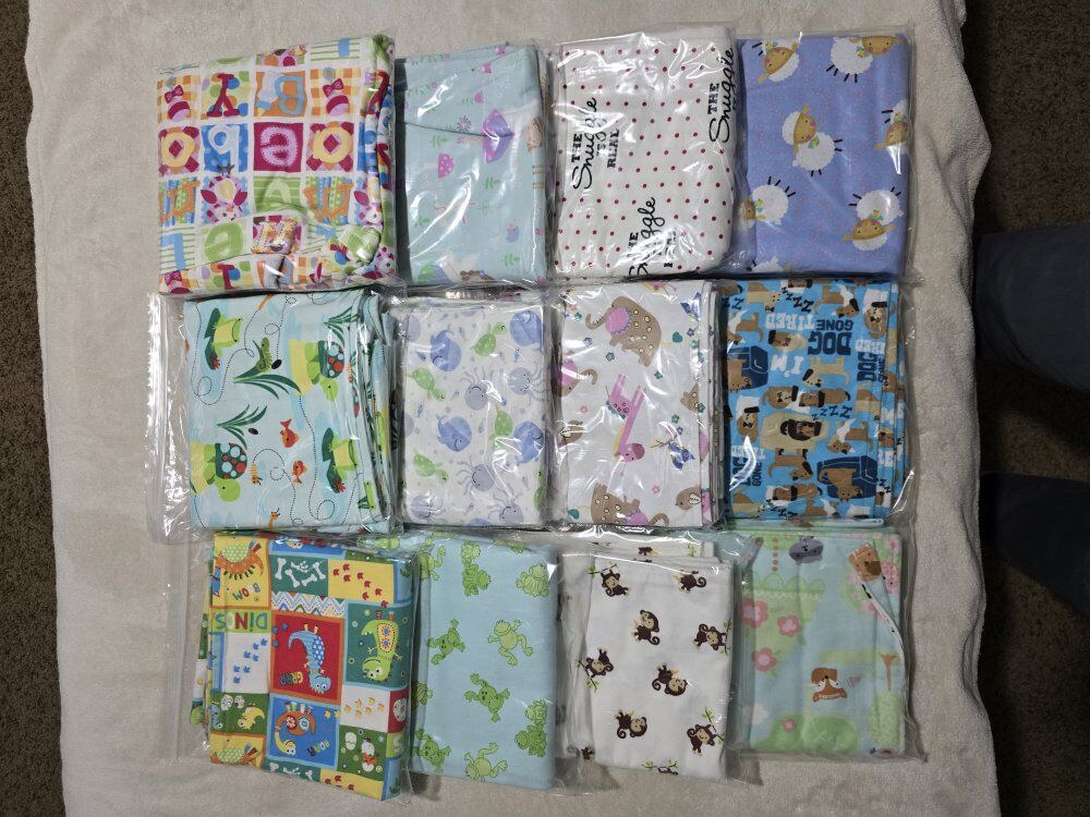 VenmoSnuggly warm baby blankets with matching burp cloths. 36"x36" soft, double layered flannel is wonderful for swaddling. Lots of darling patterns. *Pictures have been updated. Willing to make a deal if multiple sets are purchased.