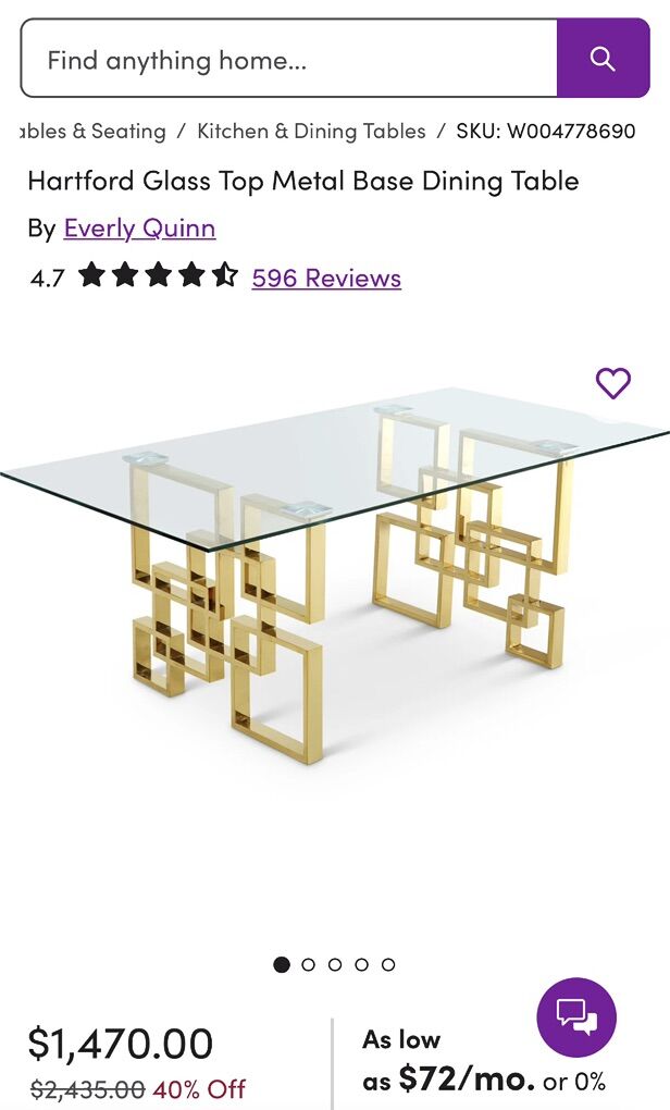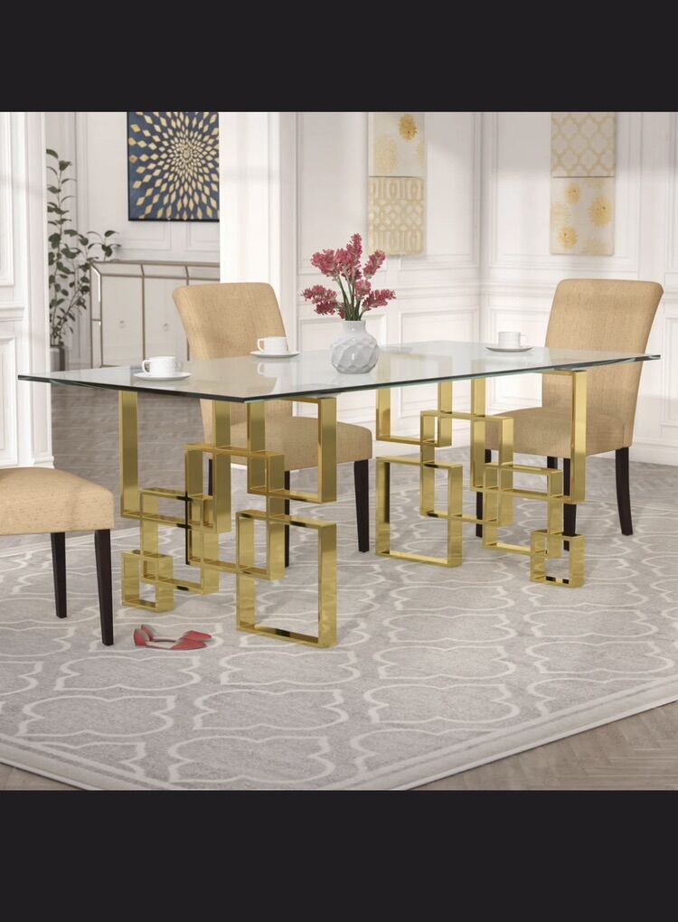 ApplePayOriginal price $1400. Slightly used, contemporary design, glass top dining table. Glass thickness: .5 inches Dimensions: 30” H X 78” W X 39” D Base material: Stainless Steel Comes in 3 pieces. Easy to transport