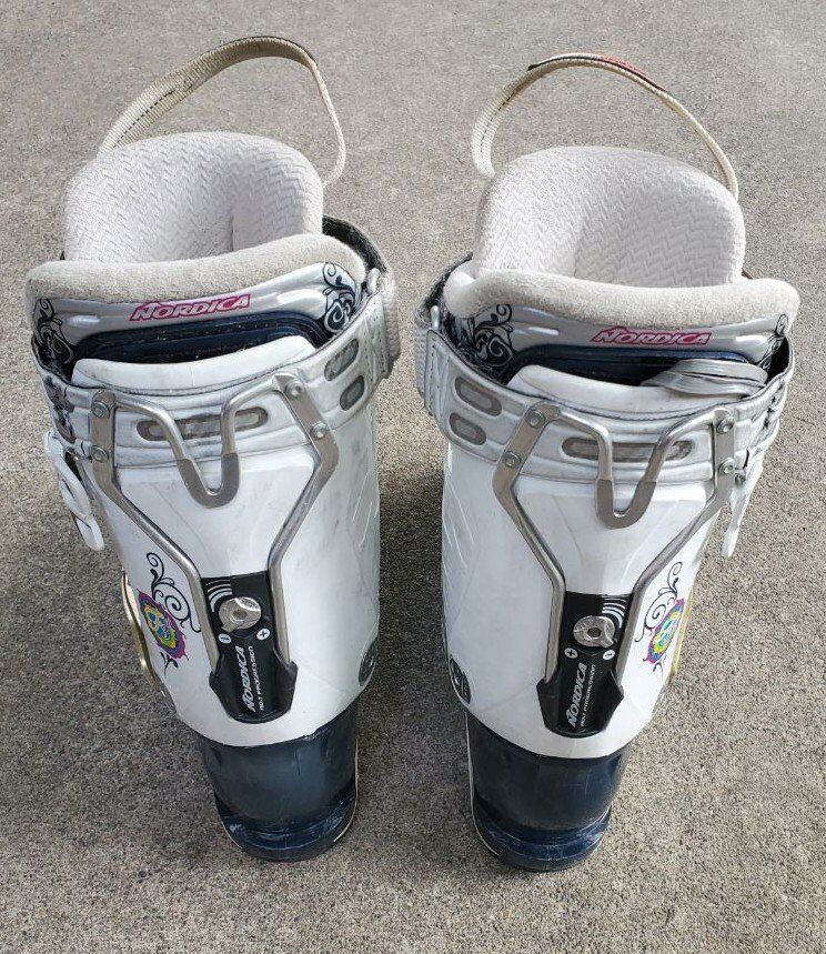 Women's/Girls Nordica Fire Arrow F3 downhill ski boots. Mondo 23.5 or 275mm which will fit a women's/girls 5-5.5 in shoe size. (Boots run smaller than Mondo size). Great ski boots to use this ski season. Great condition. Text please.