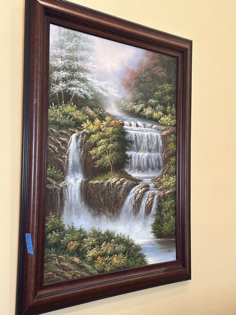 VenmoThis is a beautiful oil paining by Baldwin. It measures 57T x 46W. It is framed in an exquisite dark brown wooden frame. This piece is looking for a new home.