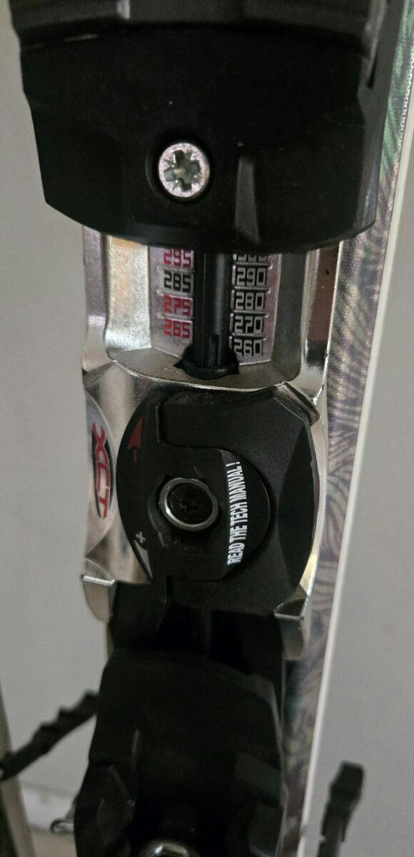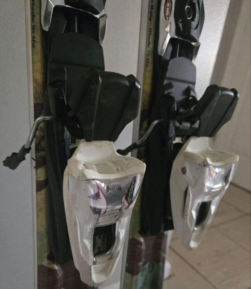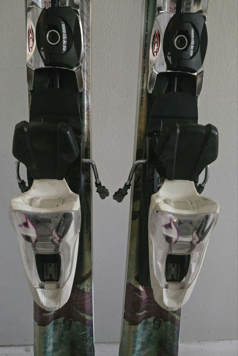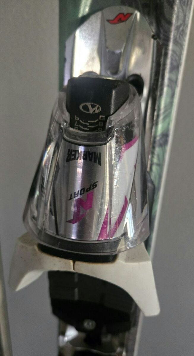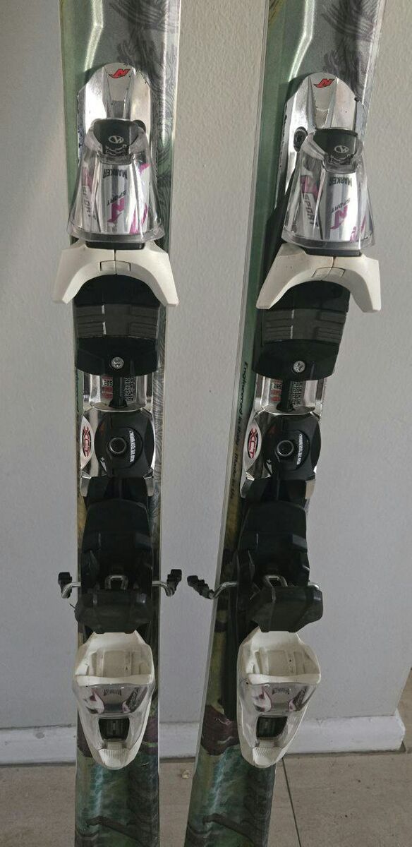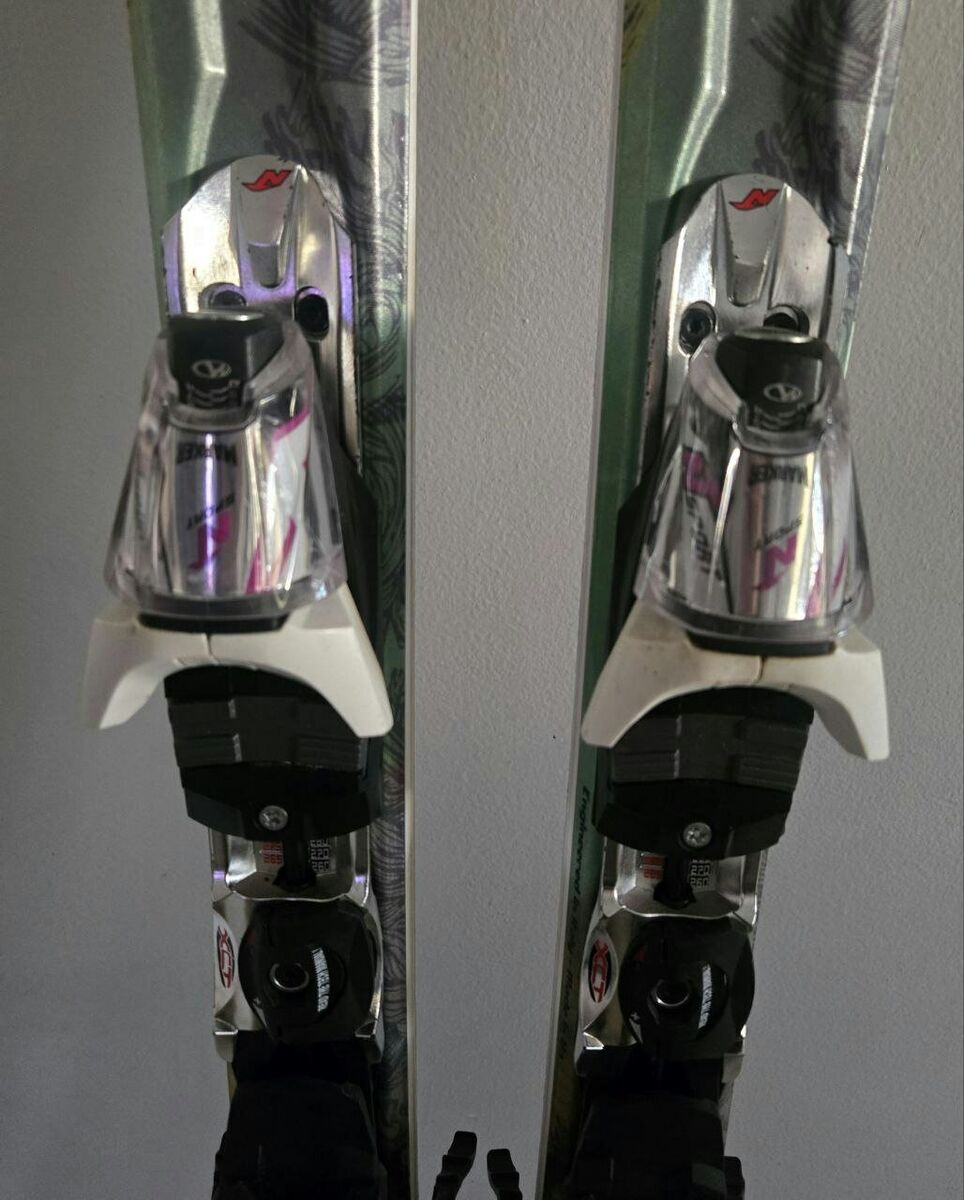 Nice 160 cm Women’s Nordica Amber downhill skis with Marker Sport easy to adjust to your boot size bindings. Tip-122mm Waist-74mm Tail-105mm. Topsheets, bases and edges are in great condition. Text please!