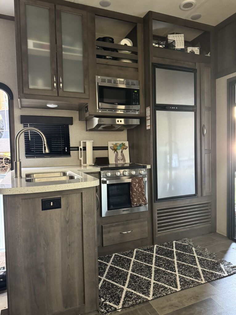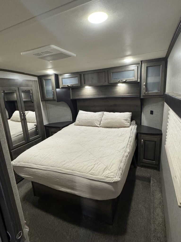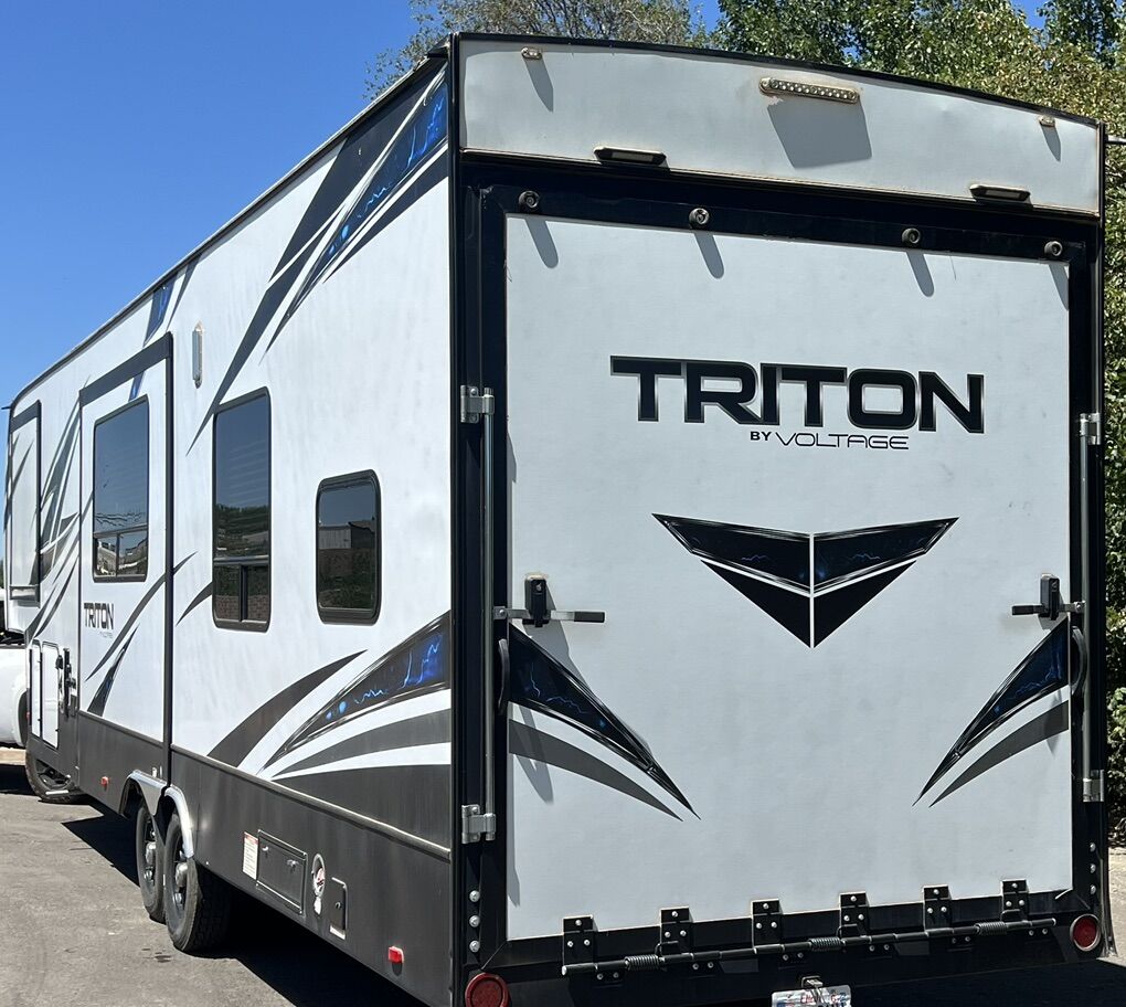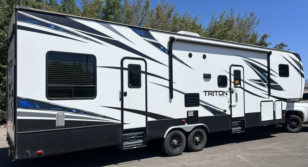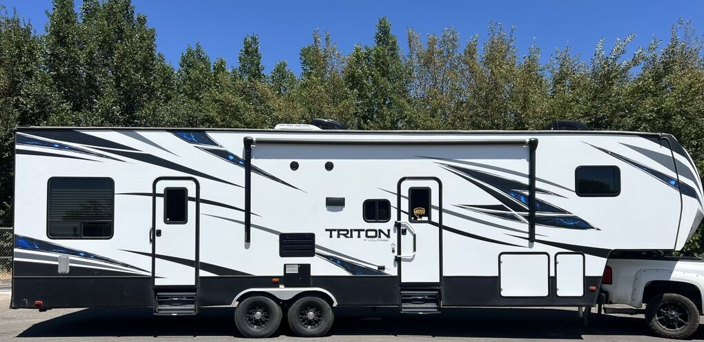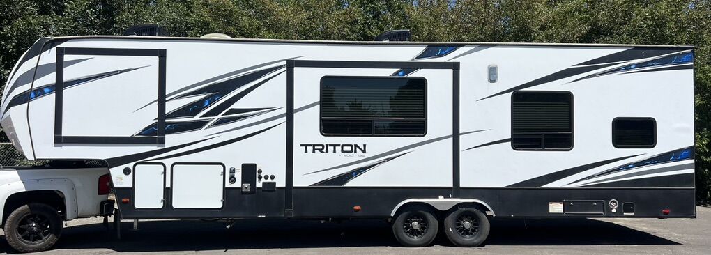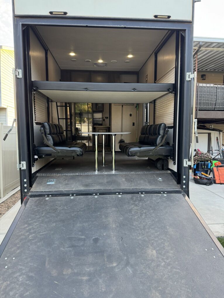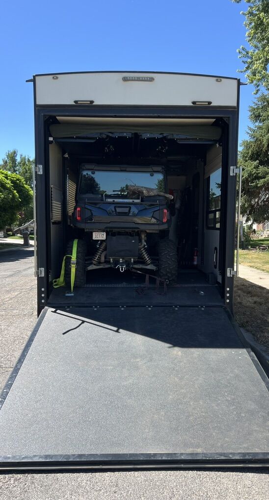 Very well taken care of and a great trailer. This is a great deal on an awesome fifth wheel! The 13 ft garage makes loading the side x side, four wheelers, motorcycles etc extremely easy. I can fit my 4 seater Polaris General and a full size dirt bike in it at the same time. It has an onboard fuel station as well as an onboard generator. Two queen beds and a convertible sofa that also folds in to another queen bed. Two slide outs that make for a super roomy and comfortable stay. Tons of storage, under the bed, above the garage and side compartments. Length-38.83’ Width-8.5’ Height-13.33’ Garage length-13’ Dry weight-11,826 lbs Fresh water tank-124 gal Grey holding tank- 74 gal Black holding tank- 40 gal