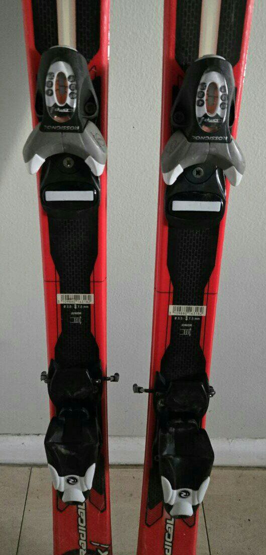 Kids/Junior 120 cm Rossignol Radica xll downhill all mountain skis with Rossignol Comp J bindings. Topsheets, bases and edges are in great condition. Tip-98mm Waist-65mm Tail-85mm. Turning radius 10 m. Text please!