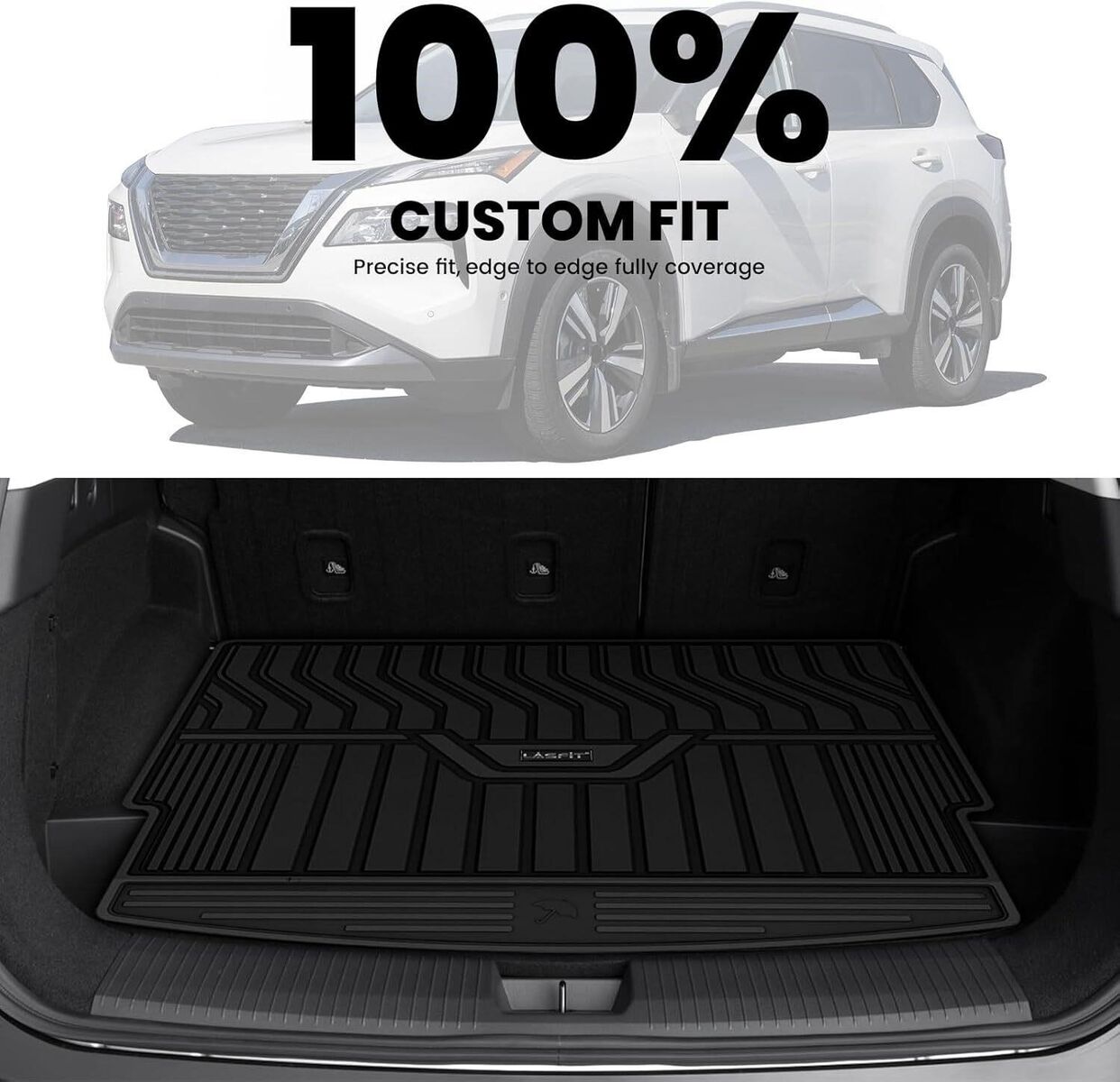 NIB Custom Fit Rogue 2021-2026: State-of-the-art 3D laser scanning technology ensures the perfect custom fit for Rogue 2026 2025 2024 2023 2022 2021 with full coverage. LASFIT cargo mats are precisely tailored for vehicle-specific cargo liners. Advantage & All Weather Protection: Specially designed for Rogue 2026-2021. Shields your cargo box from dirt, mud, salt, rain, snow, sand and even hot summer temperatures. Especially suitable for work commuting, outdoor camping, travel and vacation. Firm Yet Flexible & Easy To Clean: Raised edges all the way around have been upgraded to the innovative material, allowing the all weather cargo liner last long, better protection against spills, way more durable that they won't curl or end up buckling. Also can be easily cleaned in a few minutes. Premium TPE Material: LASFIT cargo mat made of 100% brand new TPE material (Thermoplastic Elastomer) for a comfortable and soft touch and exquisite finish. More friendly to the elderly, children and pets. Exclusively designed anti-slip studs for more safety and shock and sound absorbent. Why Choose LASFIT: LASFIT has been established for about 10 years. We use high quality raw materials, the cargo mat are thicker, heavier, cover a larger area and are not easy to deform.