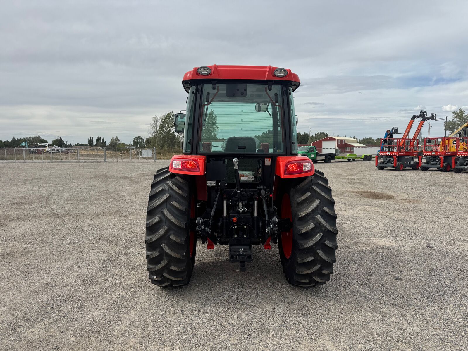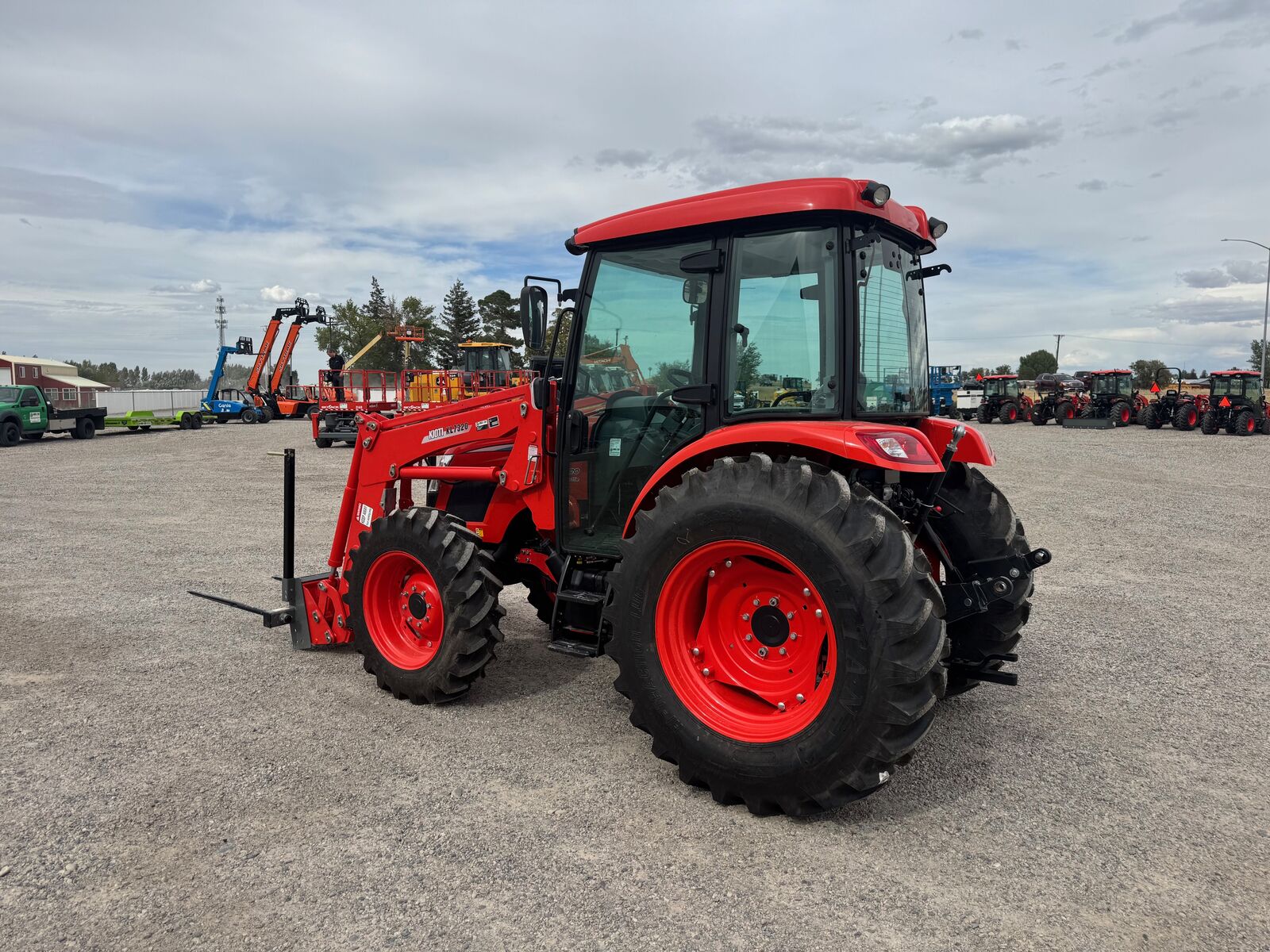Cab Heat AC, Radio, 12X12 Synchro Shuttle Trans, 4WD, Class II 3 Point Hitch, 73 HP with 63 HP to the PTO, Includes KL7320 Loader with Quick Attach has 82" Bucket and Cutting Edge, 3384 LB Lift Capacity at Pivot Pin.