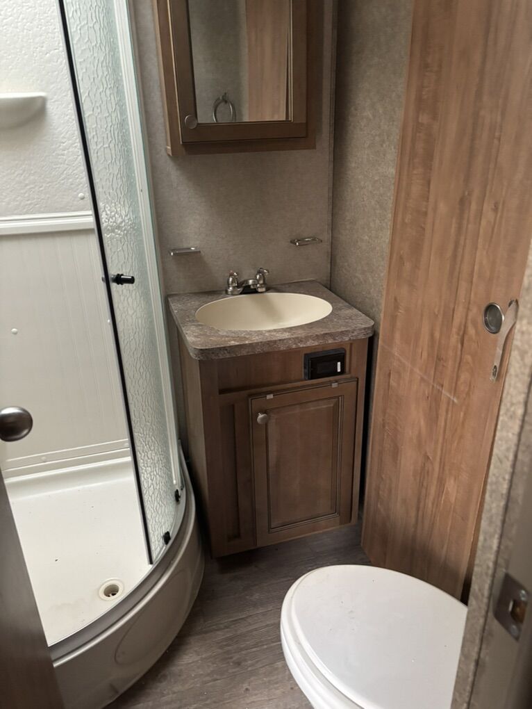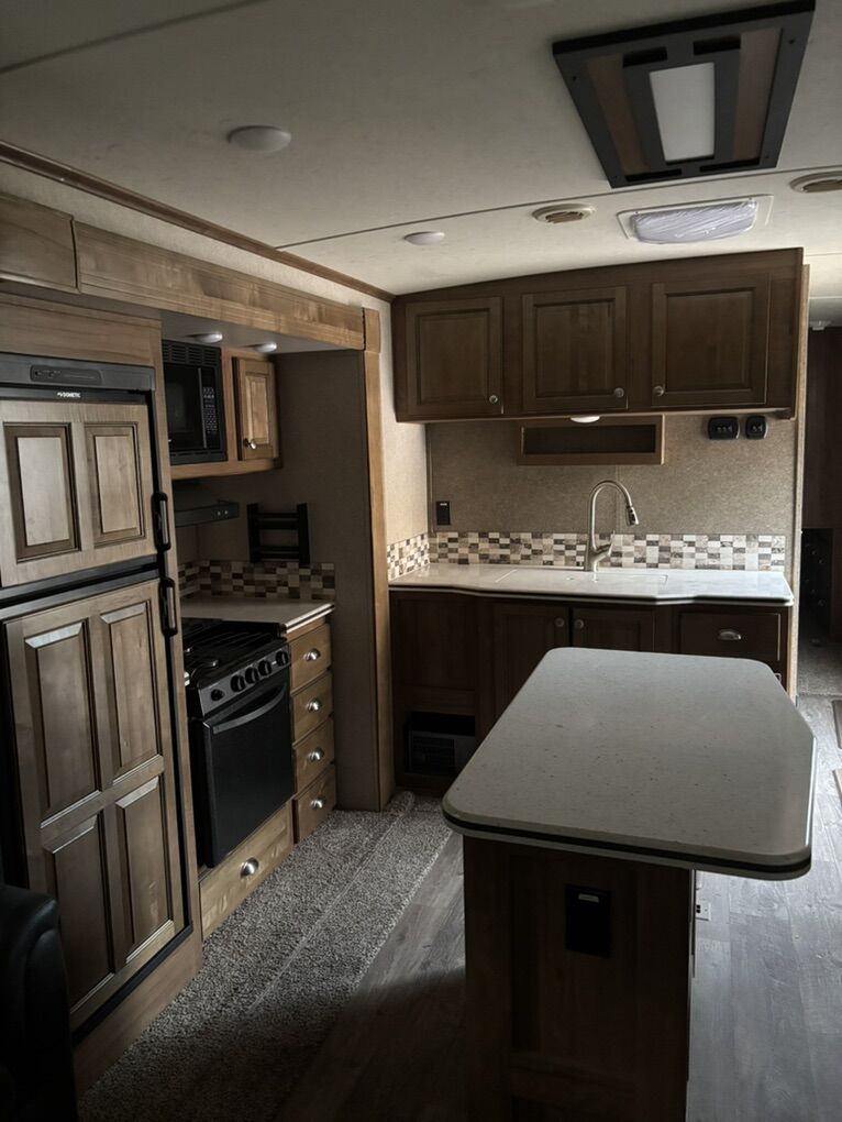 Great condition ultra lite 34ft with 3 slide outs. Rear living with fireplace, solar panel, TV center, ducted A/C, power awnings.