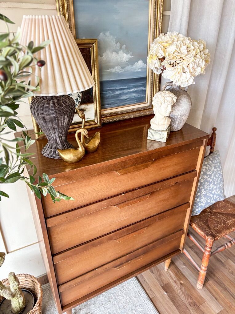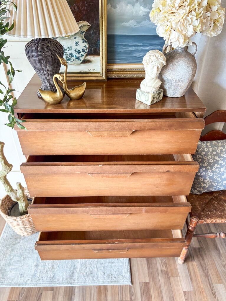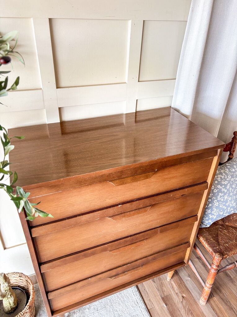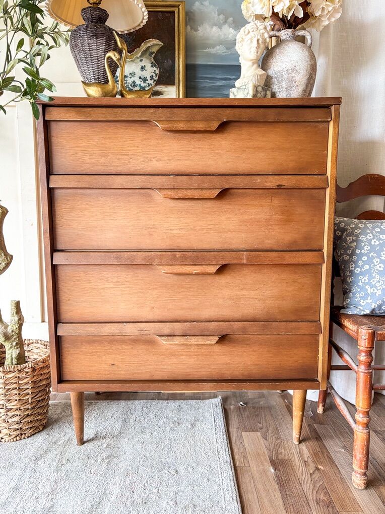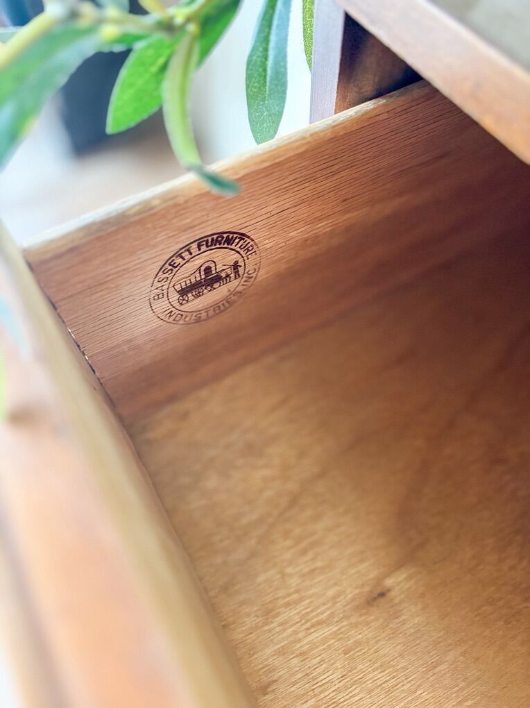 VenmoThis sleek Bassett mid-century modern walnut dresser is a beautiful example of true MCM design, showcasing clean lines, sculpted drawer pulls, and warm walnut tones that instantly elevate any space. It features its original 100% waterproof laminate top, a hallmark of quality mid-century construction, offering both style and durability for everyday living. The body remains in its original condition, and all drawers open and close smoothly, making it as functional as it is stylish. While it does show some wear and tear consistent with age, this dresser is still in solid, good condition bringing timeless mid century charm to any home!