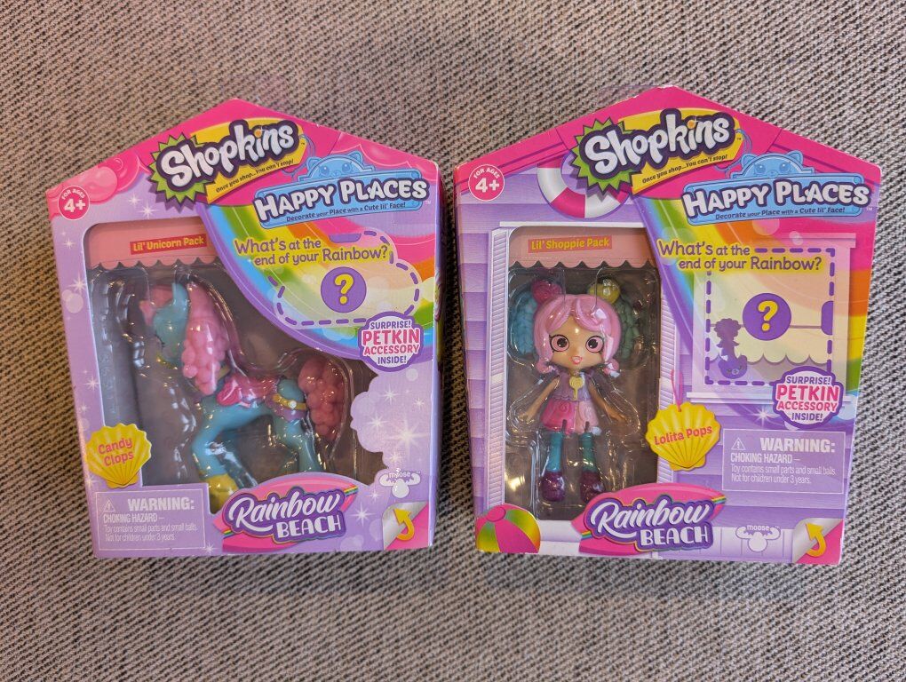 NEW! Shopkins Happy Places Rainbow Beach Shoppie Doll Lolita Pops and Unicorn Candy Clops. Message or text any time. Cash only please. I can meet at the Kaysville Library (Tuesdays or Fridays) or the South Weber Maverik. Please see my other ads. Thanks!