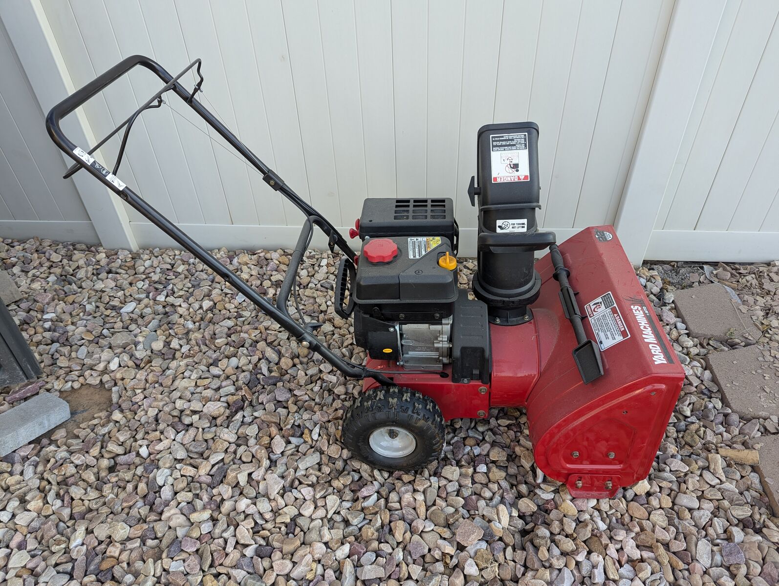 Selling because we bought a larger snowblower. Engine runs great. 179cc. Self-propelled. 22" clearing width. It works well for average jobs but struggles a bit with slush/very heavy snow.
