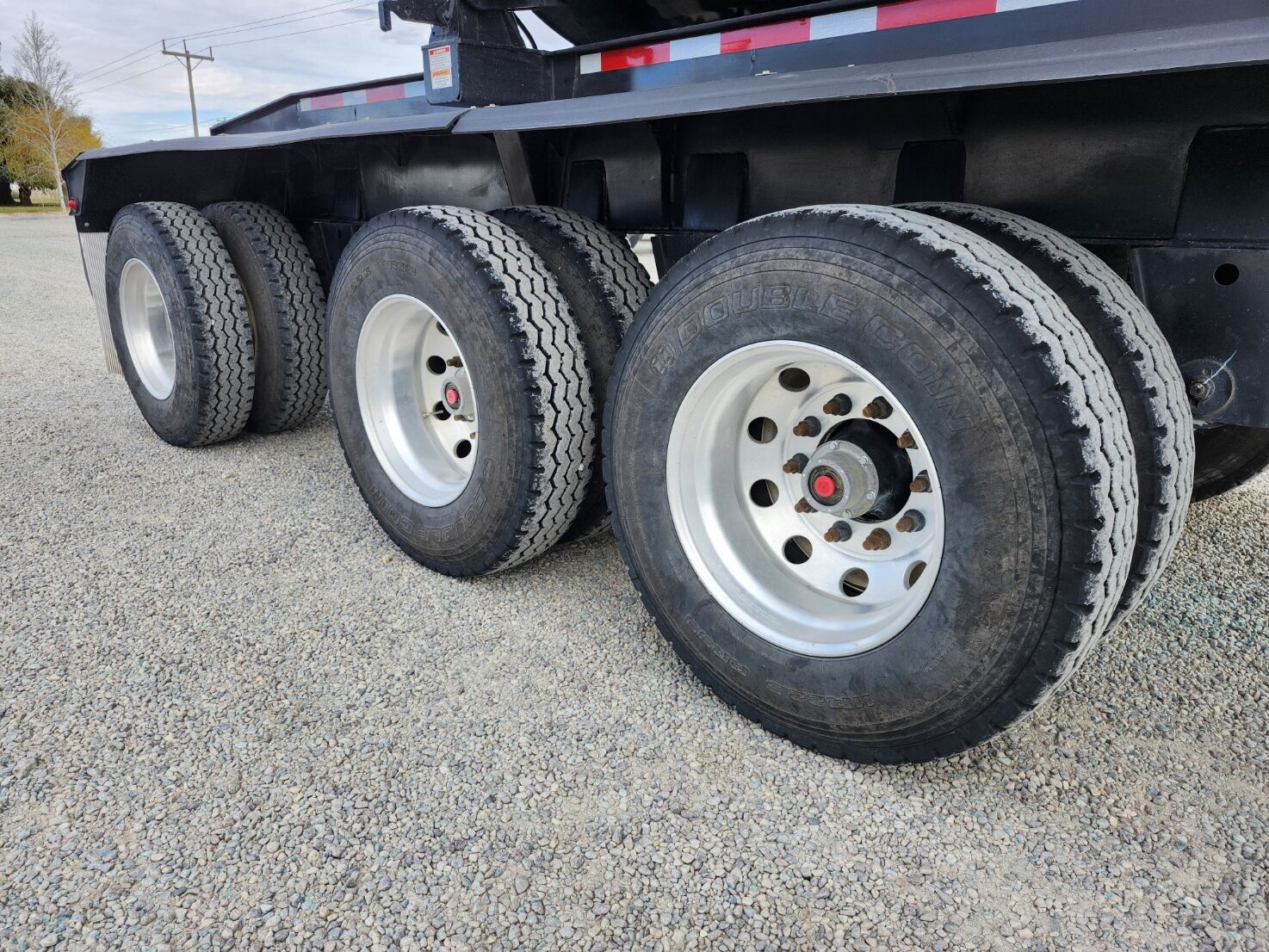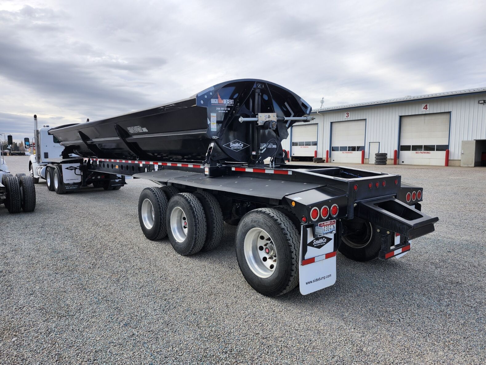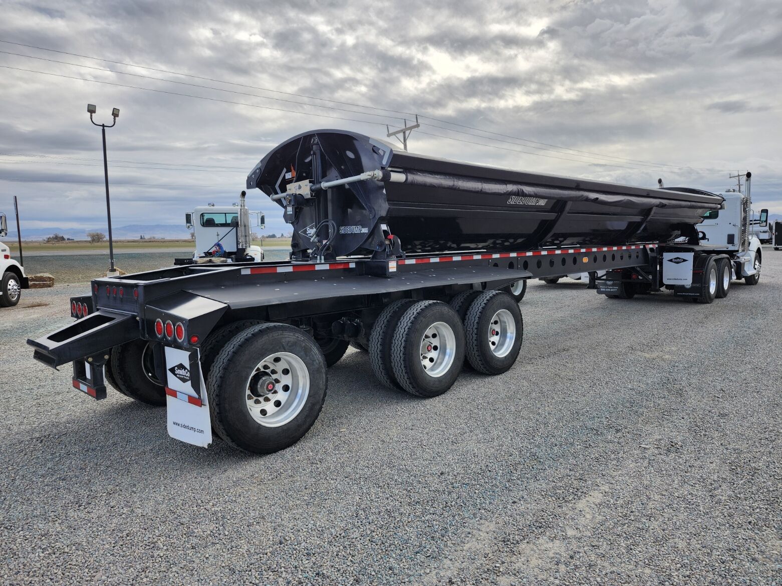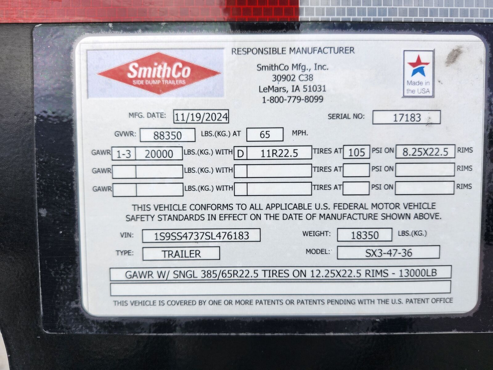 Made in the USA!! 47' trailer with 36' tub, 32 cubic yard capacity, 79" 3rd axle spacing, 18" Kingpin setting, 25K Axles, 2 speed landing gear, Electric roll over tarp, 1/4" AR450 hardened steel tub, Tarp lock-out switch, Push block, Hydraulic valve on trailer, 11R22.5 tires, Non-steerable 3rd lift axle with duals, Requires truck wet kit with minimum 10 gal hydraulic reservoir and 25-30 GPM hydraulic pump, In stock!!