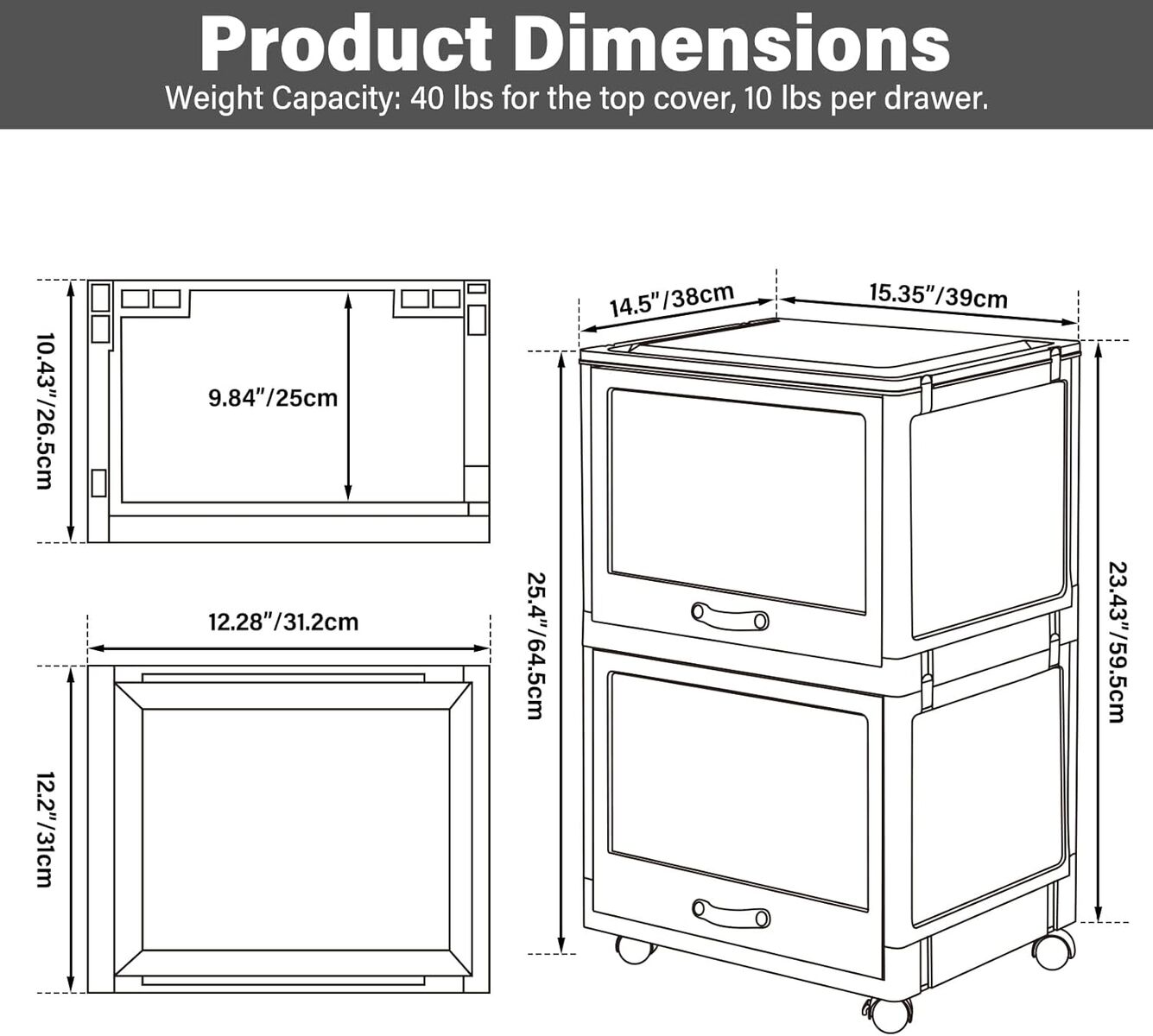 DURABLE CONSTRUCTION - Made of high quality plastic, ensuring longevity and wear resistance. The cabinet top has a weight capacity of 40 pounds, while each C drawer can hold up to 10 lbs.