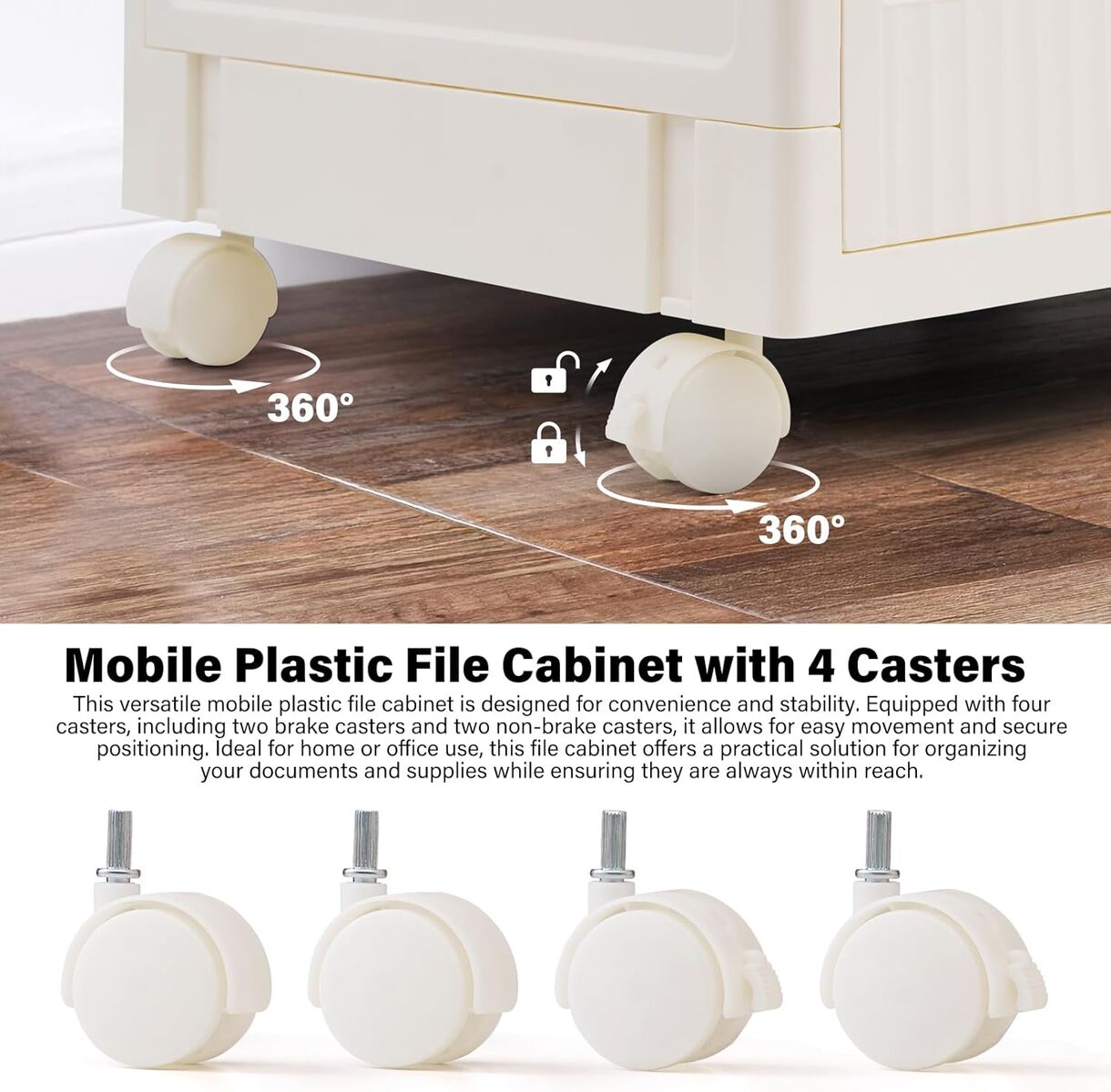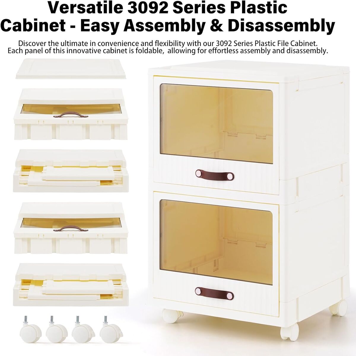 Retailer's Title: TOPSKY Collapsible Plastic Mobile File Cabinet with Castors for Letter-Size File Folder for Home and Office (White, 2 Drawers)