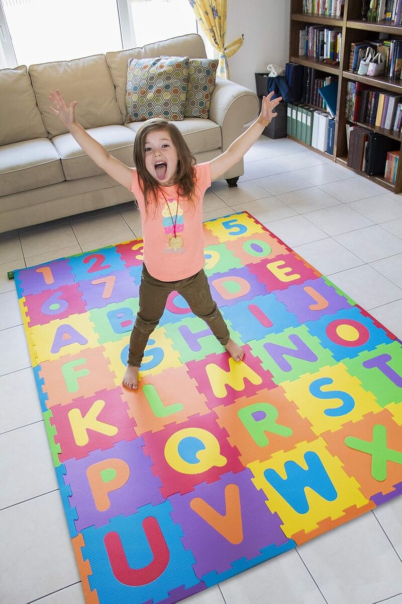 EDUCATIONAL: The shapes of the ABC floor mat help them learn the alphabet and numbers while playing.