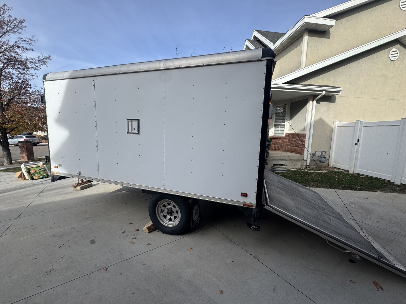 PayPalFor sale: Wells Cargo enclosed trailer, inside space is 12 ft × 8 ft × 6 ft, with drop‑down ramp door. Great for equipment, ATVs, tools, or business use. Good condition; local pickup. It does have axle brakes. The front door is door open and the back gate works great.