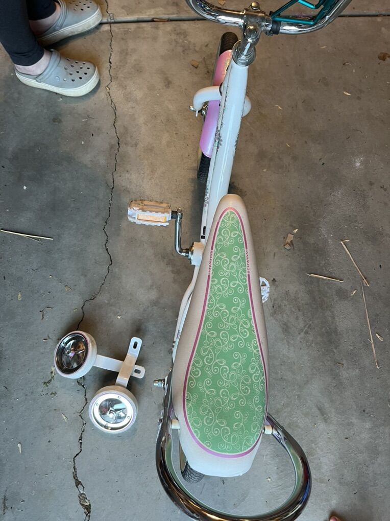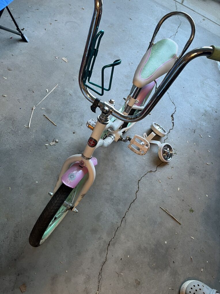 Venmogood for a 5-8 year old. The frame is in good condition aside from some wear on the paint (pictured). The seat is in fairly good condition, some crackles on the leather, zoom in on pics to see. i’m unsure if the tires hold air.