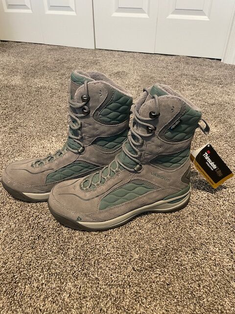 VenmoBe the cutest (and warmest) hiker on the mountain with these Vasque Thinsulate UltraDry Cold-Hold Women’s Hiking Boots Size 8 Medium Mid Top Color: Gray and Seafoam Green Lace-up Closure Brand New w/o Box Smoke free / Pet free Home. Thanks for looking! $59