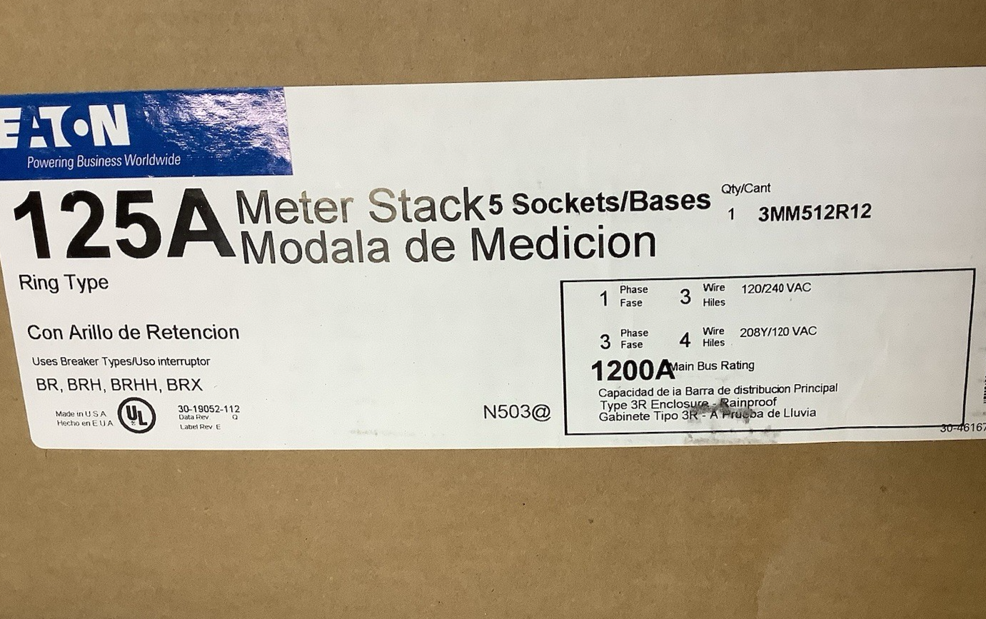PayPalEaton 3MM512R12 1200A Multiple Meter Residential 5 Meter 125A Ring Type 3 Phase