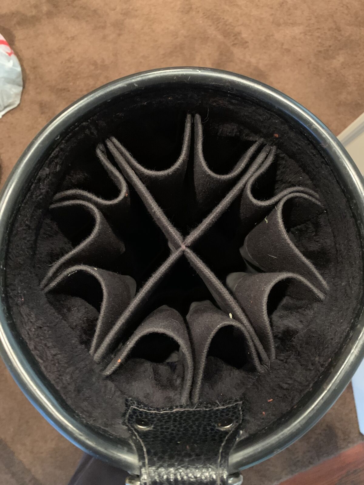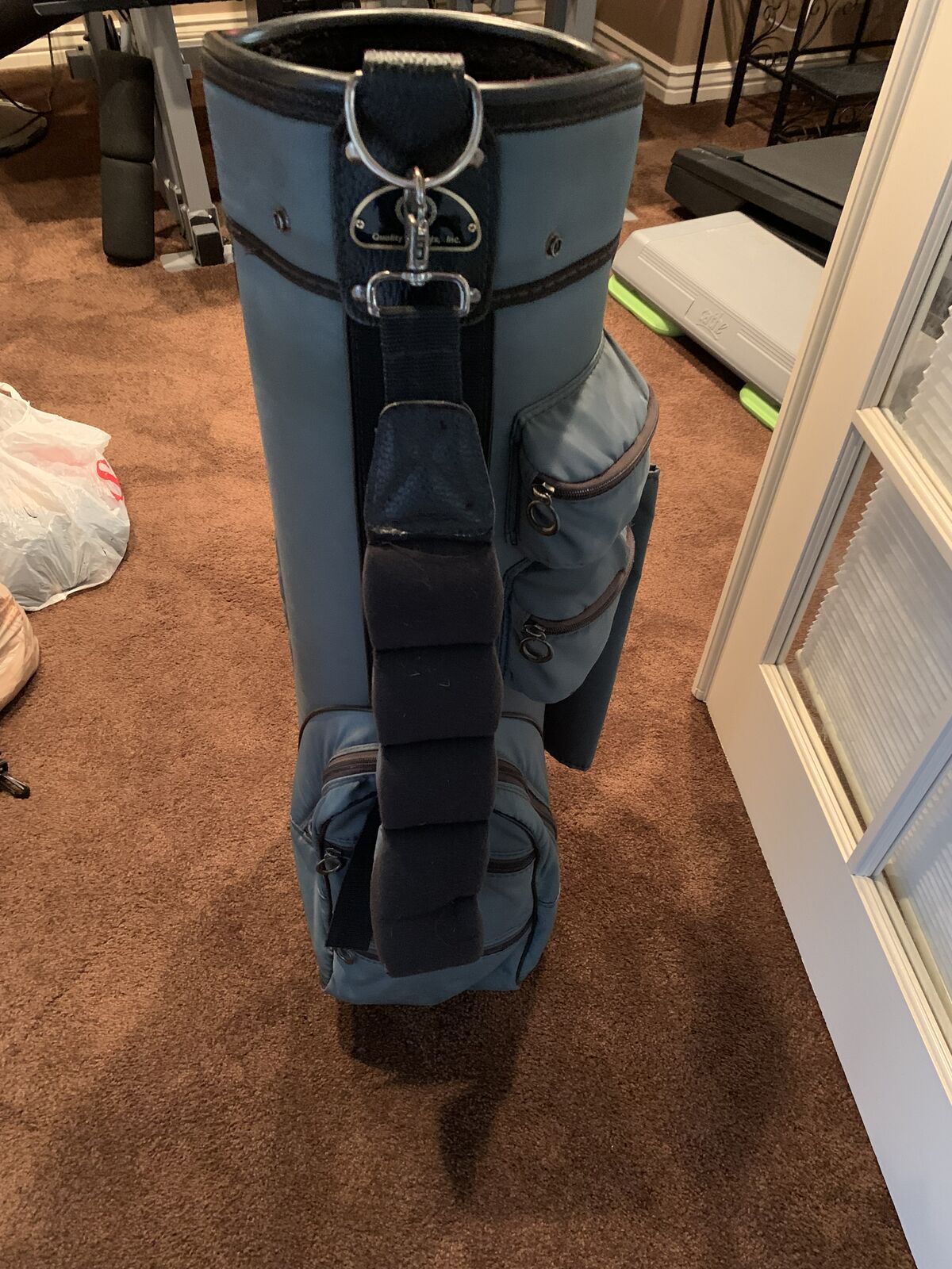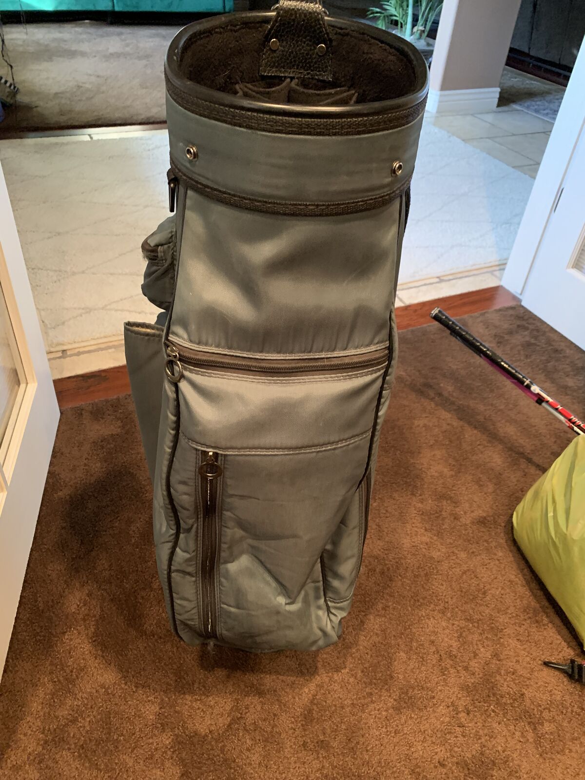 This is a 14 slot stand bag that still has a lot of use left. All zippers work and it is in good condition.