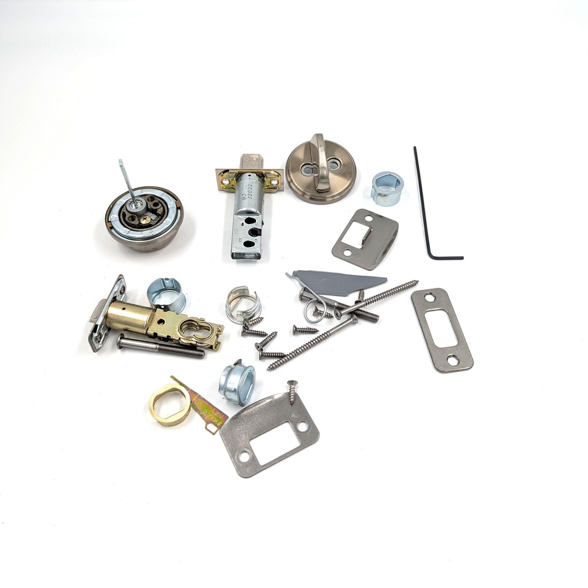 ZelleThe product is a mixed assortment of door handle and dead bolt parts in nickel finish. These parts are designed for easy installation and are suitable for universal/reversible door handing. Perfect for home improvement projects related to doors and door hardware, this assortment provides quality components for enhancing the functionality and style of your home or garden.