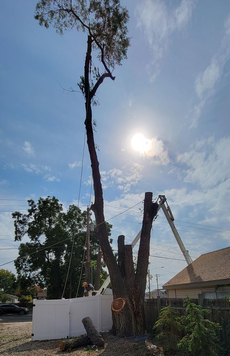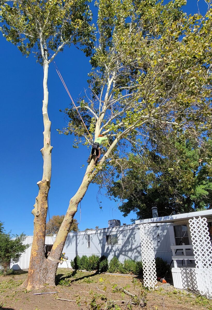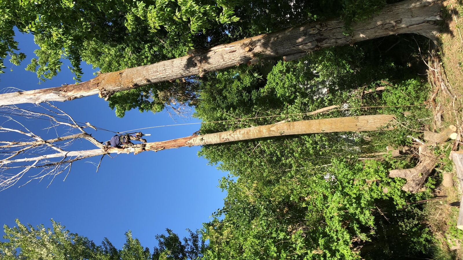 We climb all trees and we also have a bucket for large hazardous trees other companys wont do .