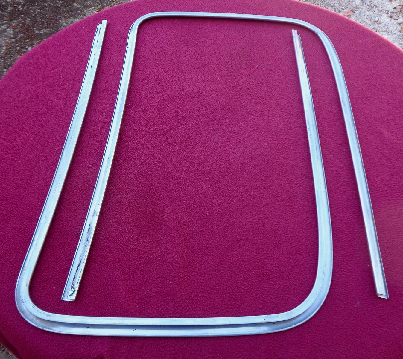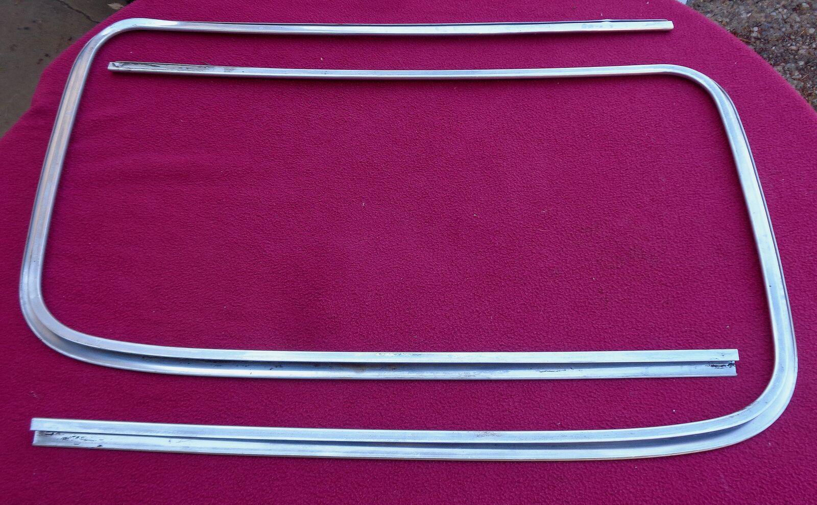 This product is a vintage Trim Windshield Molding designed for Chrysler, Plymouth, Dodge, and Mopar vehicles from 1949 to 1950. Made in the United States, this part is a genuine Chrysler product, ensuring a perfect fit for specific vehicle models from that era. The non-universal fitment reflects the authentic and specific design of this classic car part, making it a valuable and sought-after addition for collectors and restoration enthusiasts. as seen in the photos there are a couple of dings in the trim but could be easily fixed at any chrome shop.