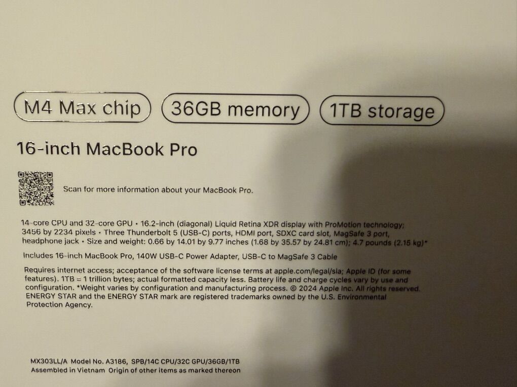 16” M4 Pro Max 16 core 36gb Memory 1tb Storage