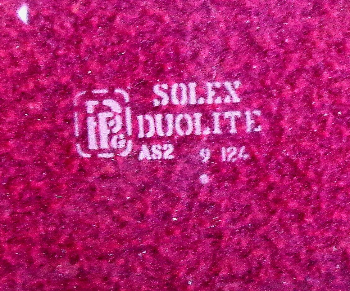 The product is a genuine OEM front side glass for a 1955 Dodge Royal Custom Sedan. This vintage part features a glass run channel mounting style and comes in a green tint. It is designed for the front of the vehicle, specifically for the left front glass on the sedan. Made in the United States and is a perfect fit for restoring and maintaining the classic look of the 1955 Dodge model. will not work on conv or hardtop models