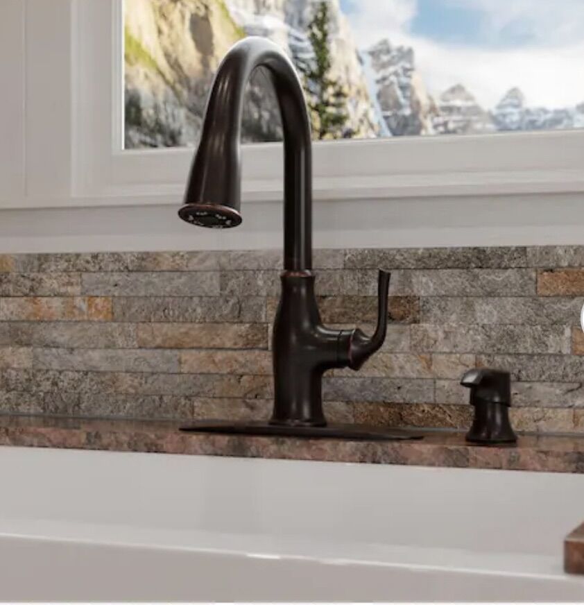 Pfister Rosslyn Single Handle Pull Down Sprayer Kitchen Faucet with Deckplate Included in Tuscan Bronze