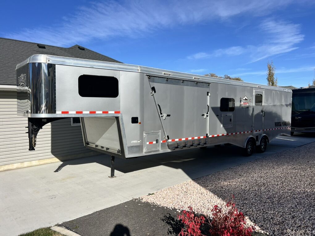 Venmo33 foot logan coach gooseneck trialer with the zbroz package and fuel station. Up till this year never had a sled pulled into it. In amazing shape inside, minor scuffs on the outside. Stereo with subwoofer, inverter, 2 heaters, helmet, boot and glover dryer etc. this is the top of the line trialer. Just purchased it but I can’t get it to the lower parking lot at my cabin so I need to go back to a bumper pull due to how steep our driveway is. Tires and everything are in excellent shape. The side with all the hooks has a clear wrap to prevent scuffs. Title in hand.