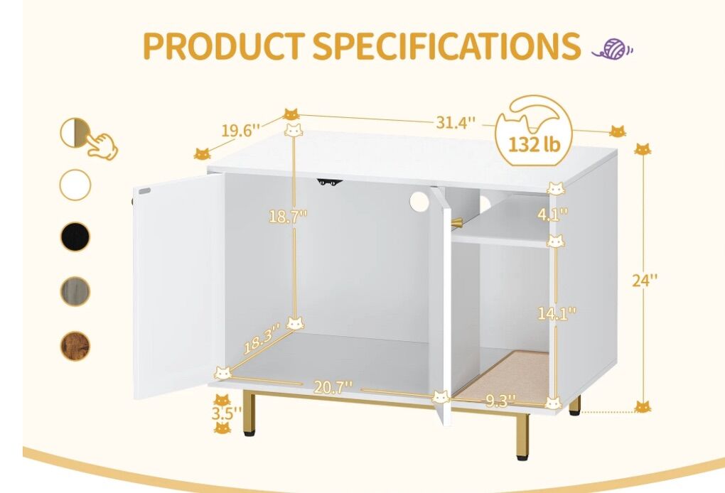 VenmoHzuaneri Cat Litter Box Enclosure, Litter Box Furniture, Wooden Pet House