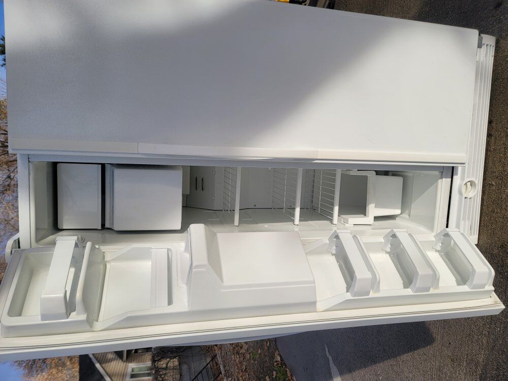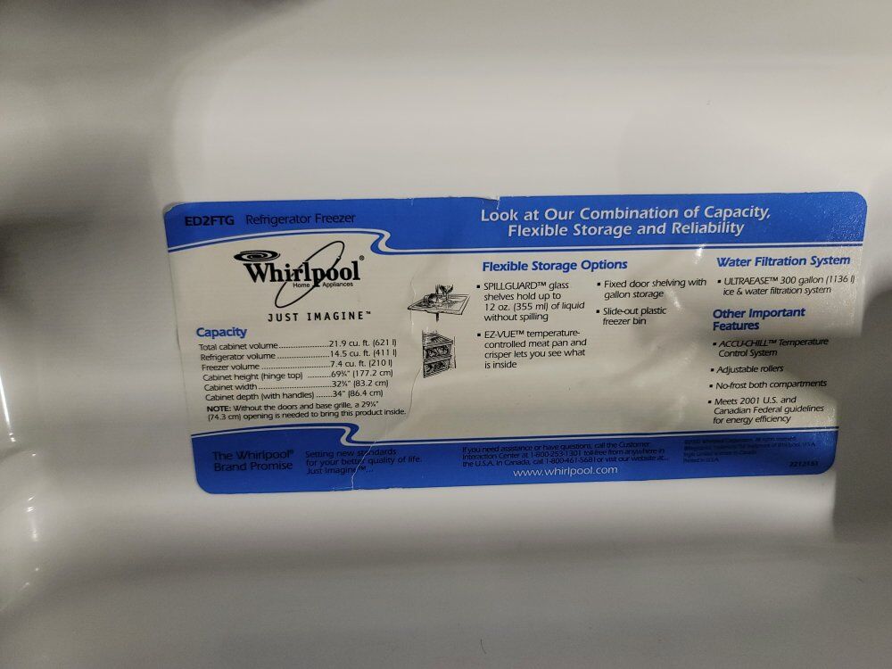 VenmoWhirlpool side by side fridge/ freezer in excellent condition dimensions are: 33 inches wide, 30 inches deep, @ 66 inches tall