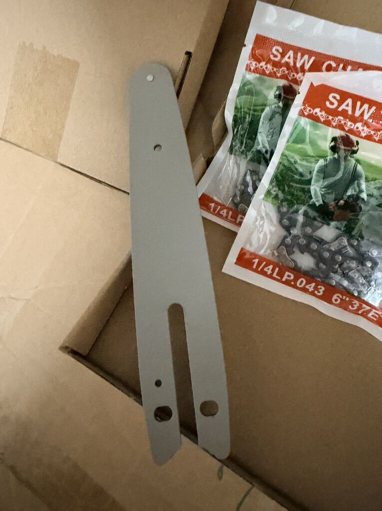 Venmo6 Inch Chainsaw Chain and Guide Bar, Replacement Chain Saw Bar and Chains for 6 inch Mini Cordless chainsaw. I’ve got 3 new boxes of these for a total of 12 chains and 3 blades all together.