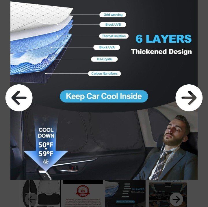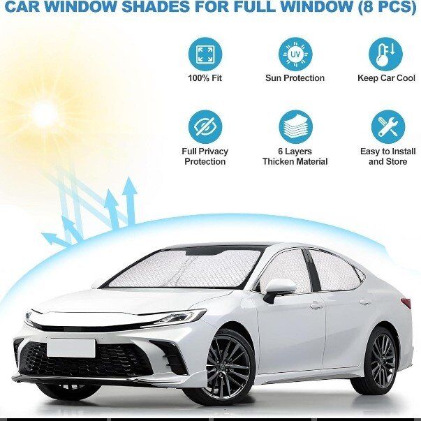 Venmo100% Fit Camry Sun Shade: Specifically designed for 2017 2018 2019 2020 2021 2022 2023 Toyota Camry, this car sun shade covers 100% of your side windows, front and rear windshields with no light leakage. It turns day into night for complete privacy. 6-Layer Thicker Durable Car Curtains: All car window shades are made from 6 layers of thickened silver reflective material, featuring water and stain resistance, as well as durability against wear and tear. They provide 80% better sun & heat protection and an extended lifespan compared to standard double-layer shades, ensuring your car's interior such as the seats and dashboard stays in pristine condition. 100% UV Protection & Heat insulation: All Toyota Camry sunshades are made from reflective silver fabric, this window shade for car blocks 100% harmful UV rays and glare. The 6-layer thick design keeps your car cool, prevents interior damage, and protects against sun exposure. The double-sided design allows the silver side to reflect UV rays in summer, while the black side absorbs heat in winter. Car Privacy Window Shades: These Toyota Camry window covers are opaque, providing full coverage for your car.
