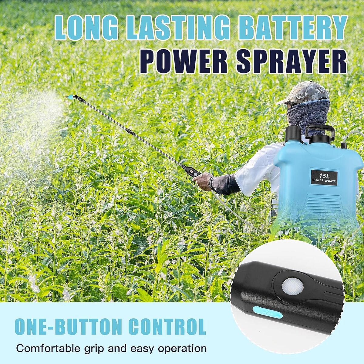 ELECTRIC SPRAY,LABOR-SAVING AND EFFICIENTThe Battery powered sprayer is equipped with an electric drive system that allows for easy button start without the need for manual pressurization, reducing physical exertion. The continuous and stable spray can cover more evenly, greatly improve the efficiency of gardening operations, and make spraying easy and accurate.
