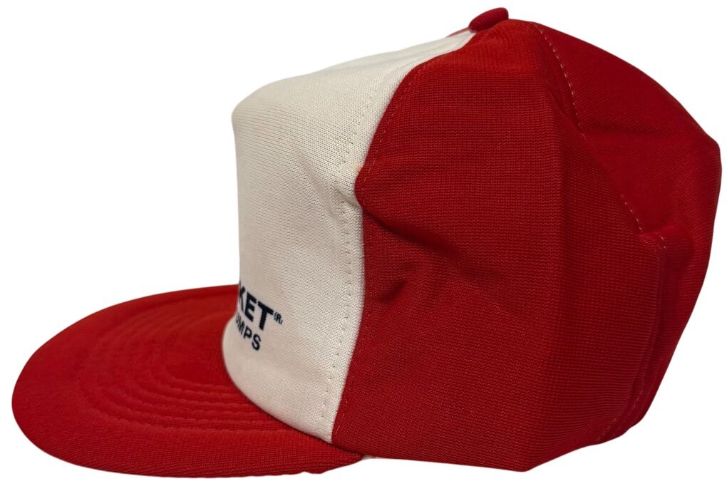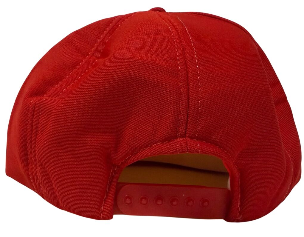 The Vintage 1980’s Red Jacket Pump Flat Brim Trucker Style Snapback by Sportcap is a stylish and nostalgic accessory perfect for various occasions. Made of a blend of polyester and cotton canvas, this solid red and white hat features a retro design that adds a touch of classic style to any outfit. The adjustable snapback closure ensures a comfortable fit for men who appreciate vintage fashion from the 80s and 90s. Whether you're traveling, partying, working, or simply hanging out, this retro hat is a standout piece that will complement any look.