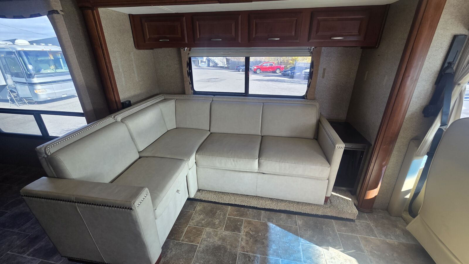 This 2013 Thor Challenger 37GT offers a spacious triple-slide floorplan with a large rear kitchen, full-body paint, opposing living-room seating, and a premium Class A gas experience. This coach has 31,098 miles, 1,735 hours on the generator, and was driven in from Dallas.