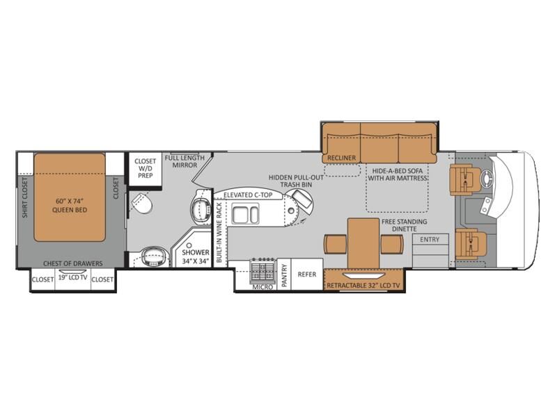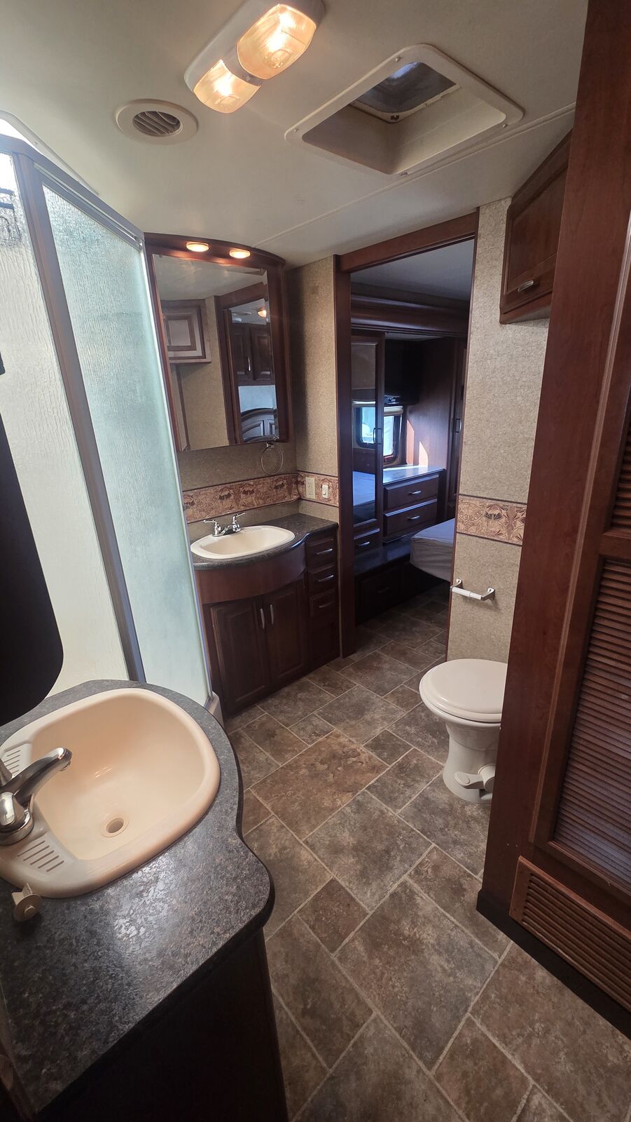 Unit Features / Upgrades: • Full-body paint • Rear kitchen with extended solid-surface counter space • Living-room opposing seating and large entertainment center • Automatic leveling jacks • Exterior entertainment center • Private rear bedroom with wardrobe slide • Residential-style bathroom with corner shower • Driven in from Dallas