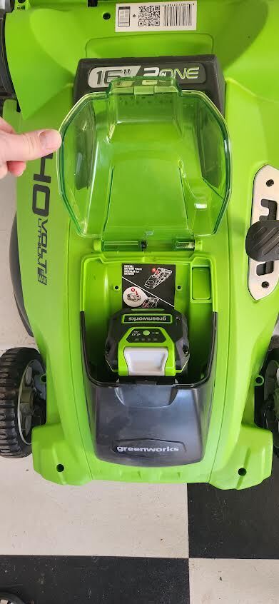 Greenworks 40V 16" 2 in 1 cordless lawn mower, lightly used. Comes w/ 4.0Ah battery and charger. Collapsible for compact storage and lightweight. FCFS Cash in hand. Located in Tooele, delivery available to SLC area for small fee.